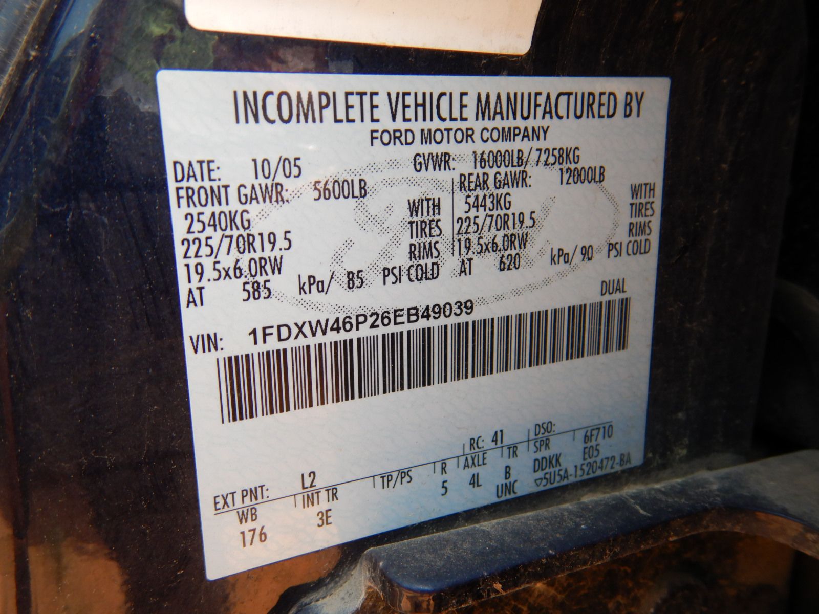 Vehicle ID Number: 1FDXW46P26EB49039