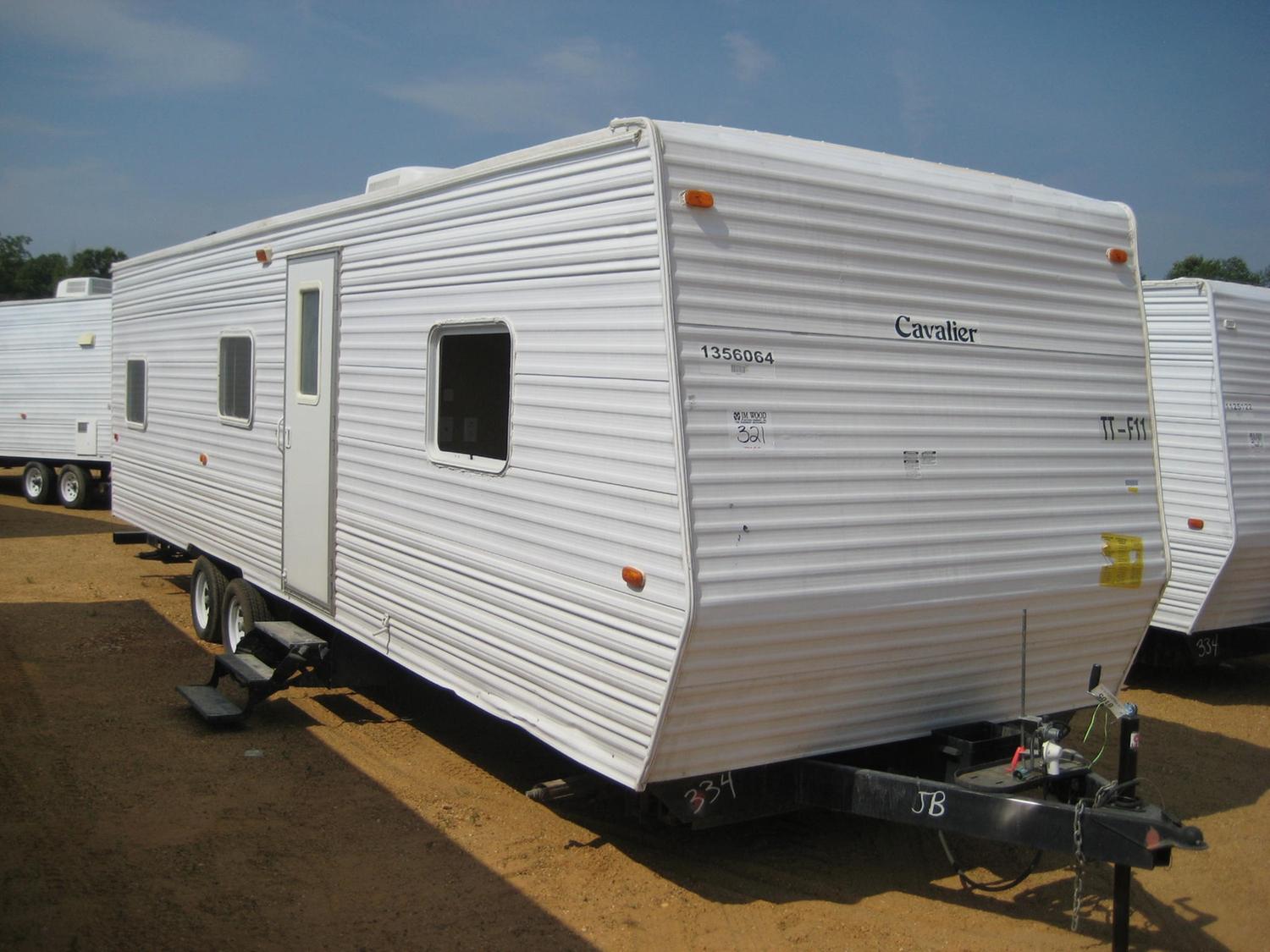 2006 GULF STREAM CAVALIER 8'X32' CAMPER TRAILER, S/N 1NL1VTR2061060806, SLEEPS 8, QUEEN BED, BUNK BEDS, REFRIGERATOR, MICROWAVE, HEAT, AIR, STAND UP SHOWER, TUB (A 10% ADMINISTRATIVE FEE APPLIES TO EACH TRAILER REGARDLESS OF PRICE)