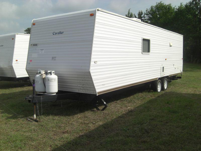 2006 GULF STREAM CAVALIER 8'X32' CAMPER TRAILER, S/N 1NL1GTR2661073666, SLEEPS 8, QUEEN BED, BUNK BEDS, STOVE, REFRIGERATOR, MICROWAVE, HEAT & AIR, STAND UP SHOWER, TUB, LP GAS TANKS (10% ADMIN FEE APPLIES REGARDLESS OF PRICE)
