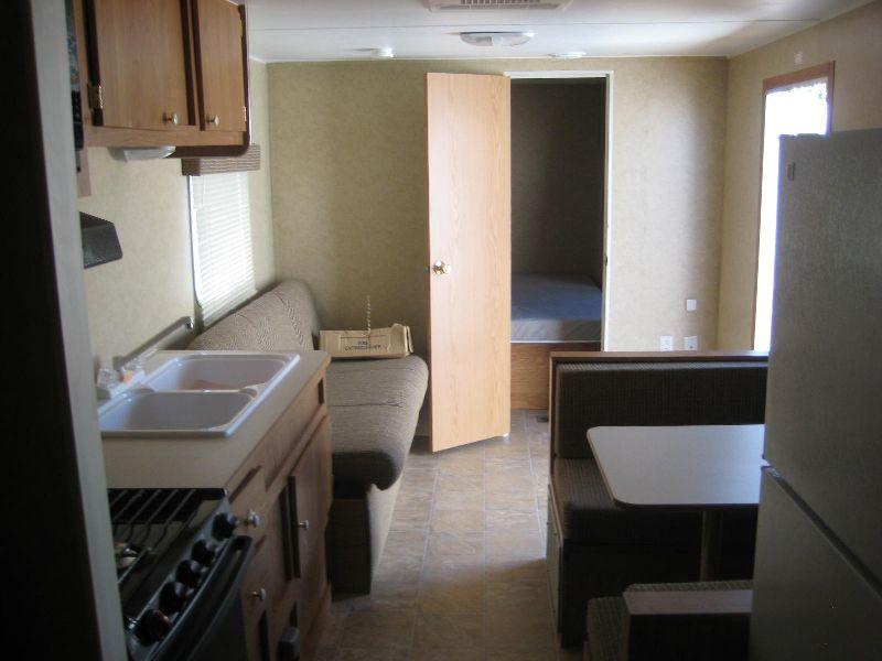 2006 GULF STREAM CAVALIER 8'X32' CAMPER TRAILER, S/N 1NL1GTR2761037355, SLEEPS 8, QUEEN BED, BUNK BEDS, REFRIGERATOR, MICROWAVE, HEAT, AIR, STAND UP SHOWER, TUB (A 10% ADMINISTRATIVE FEE APPLIES TO EACH TRAILER REGARDLESS OF PRICE)