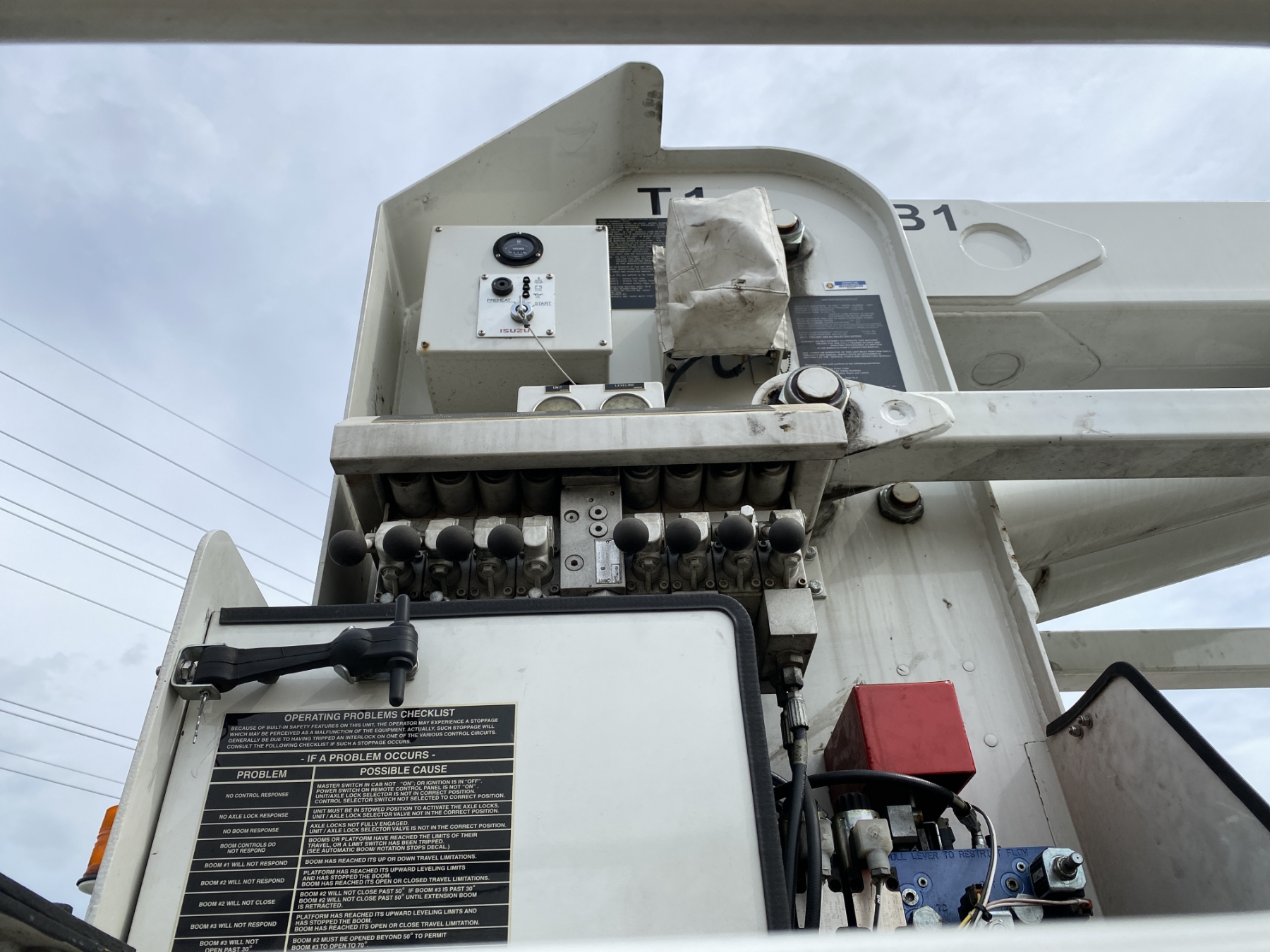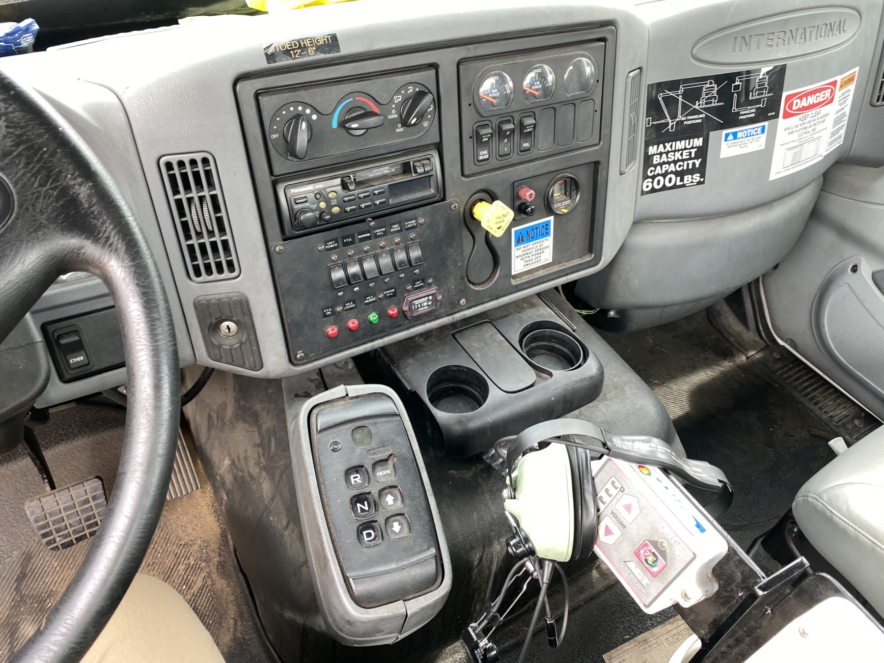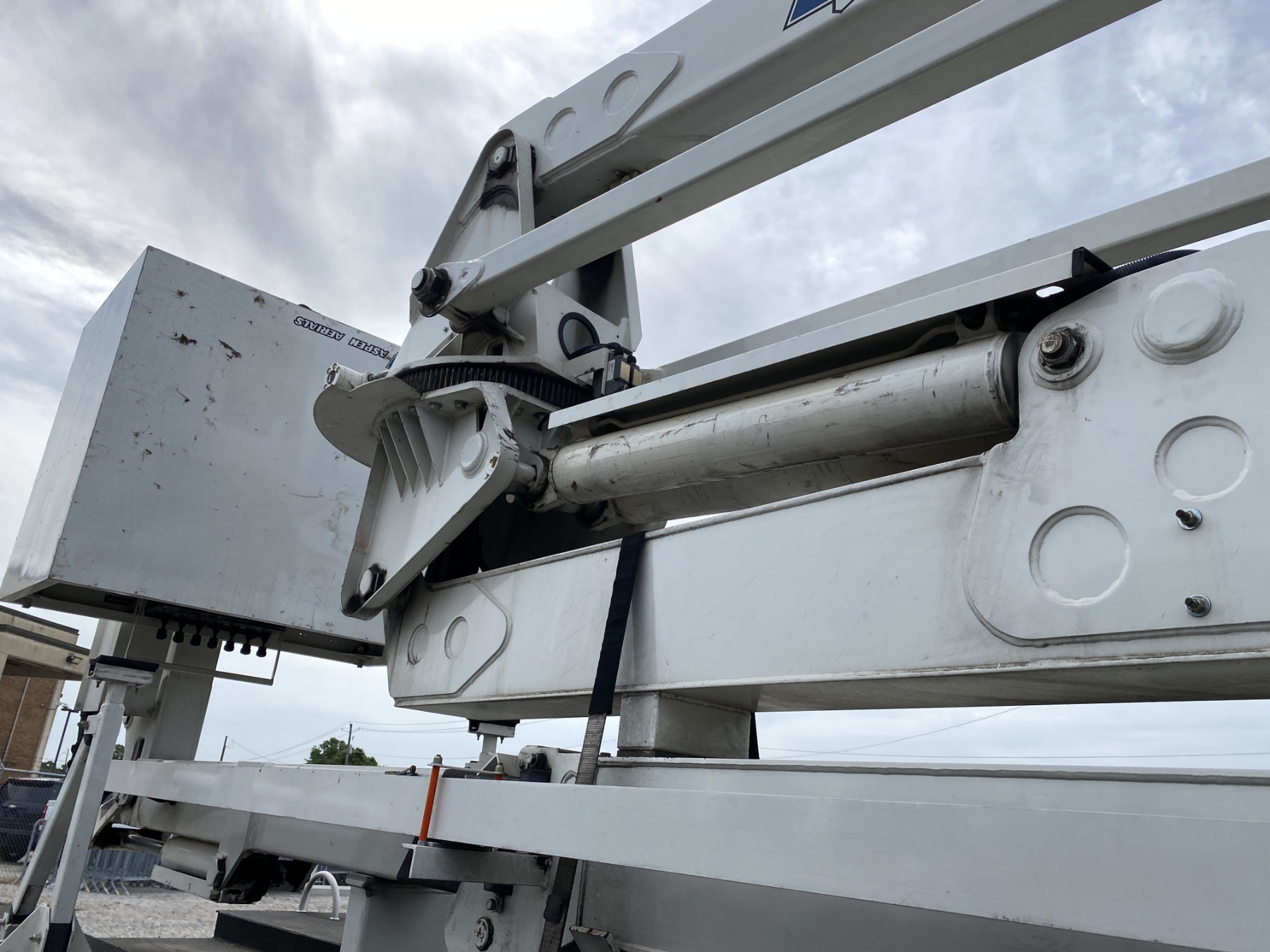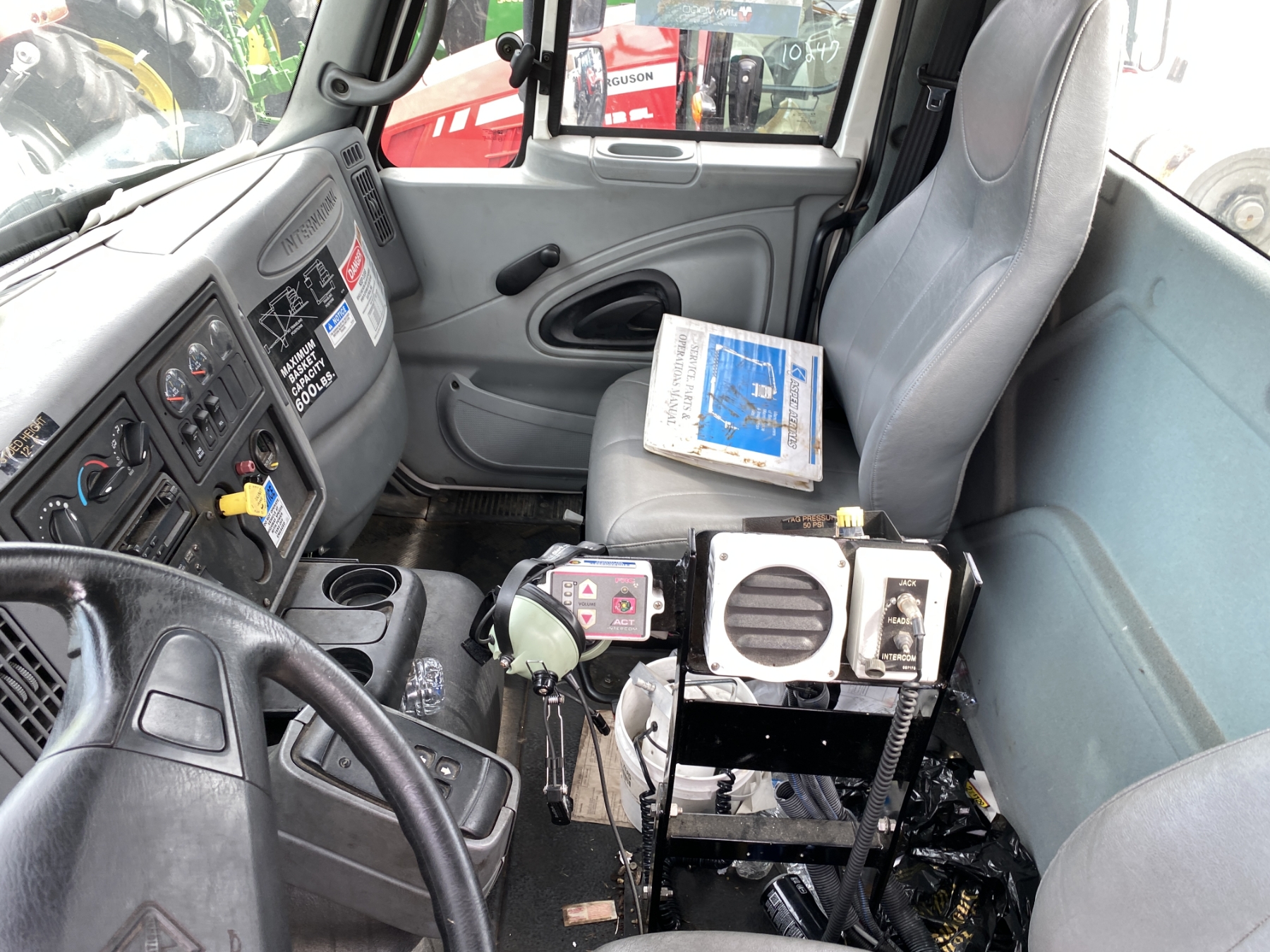 Tri Axle, International engine, Allison A/T, Aspen Aerial UB50 bucket, 600 lb. capacity, flatbed body, 11R22.5 rear tires, 425/65R22.5 front tires, (Certification is Current)
