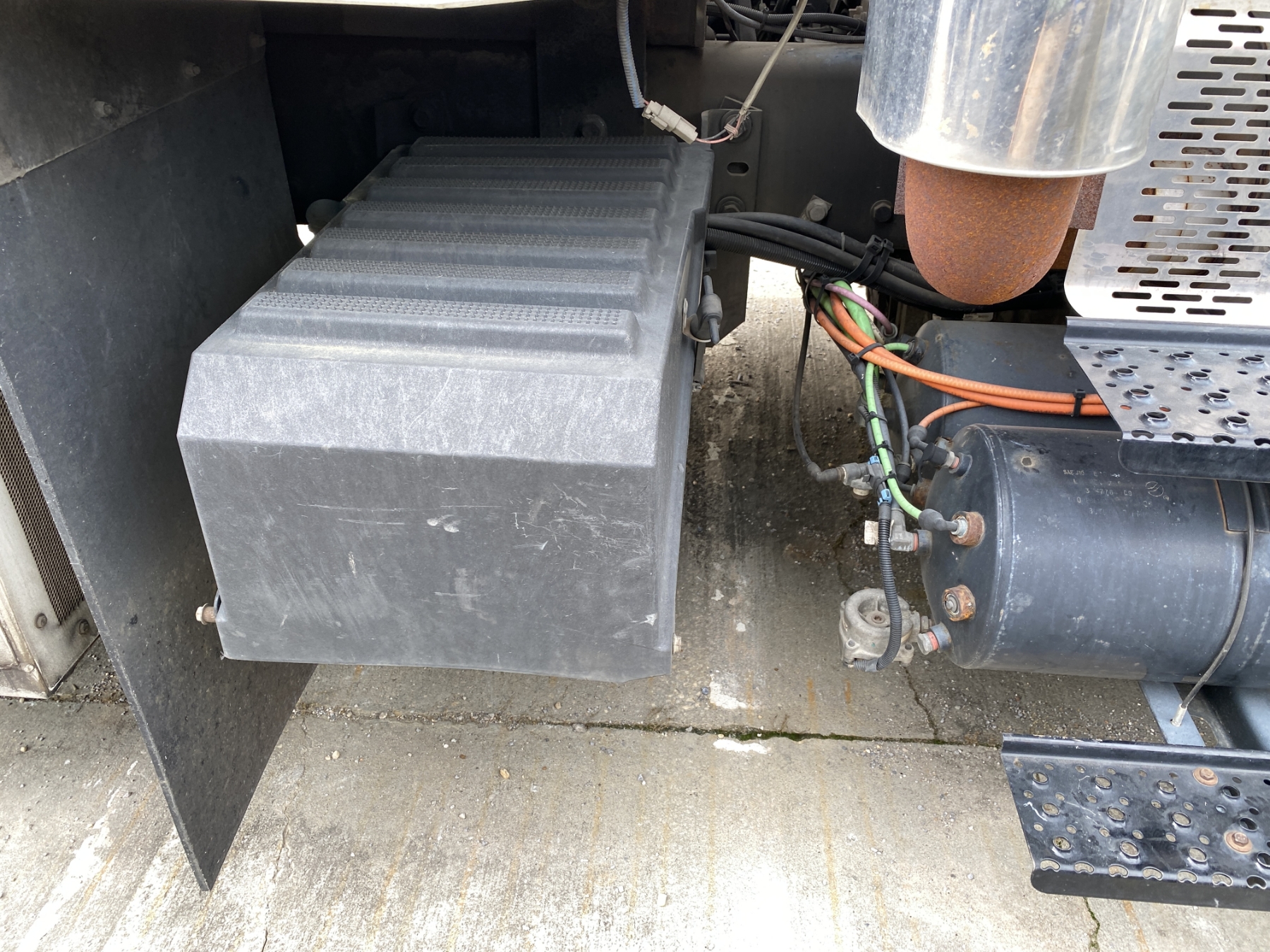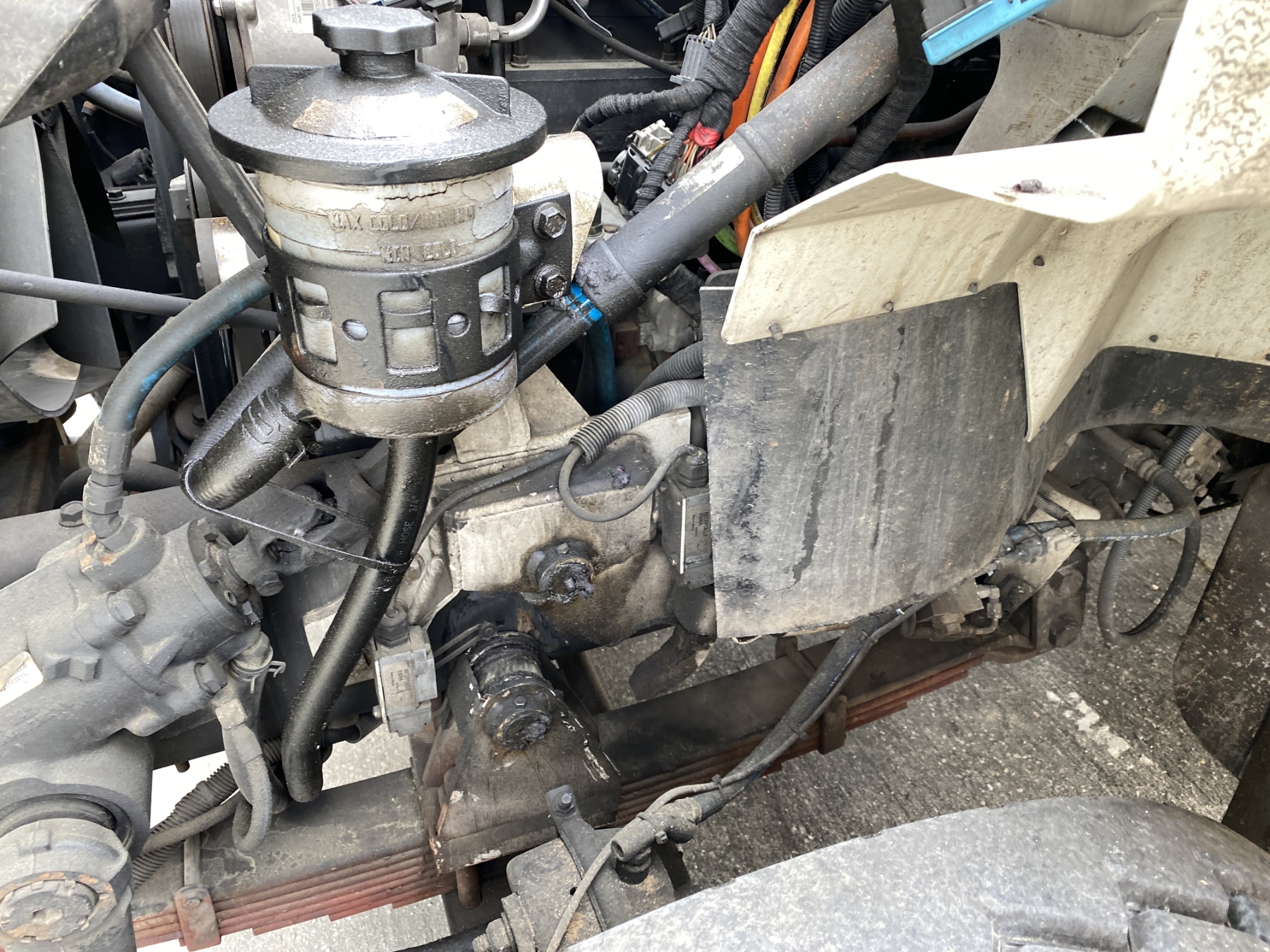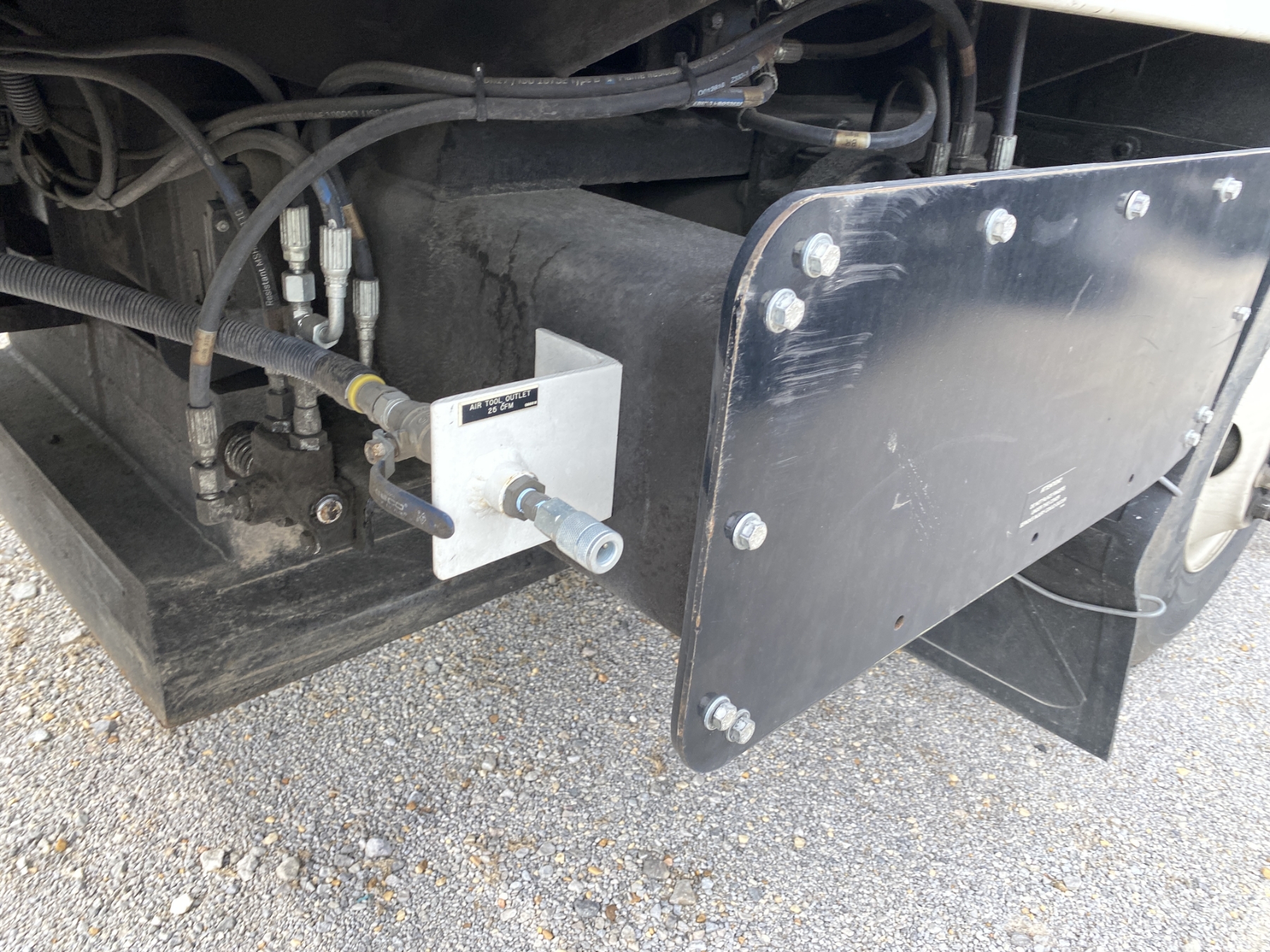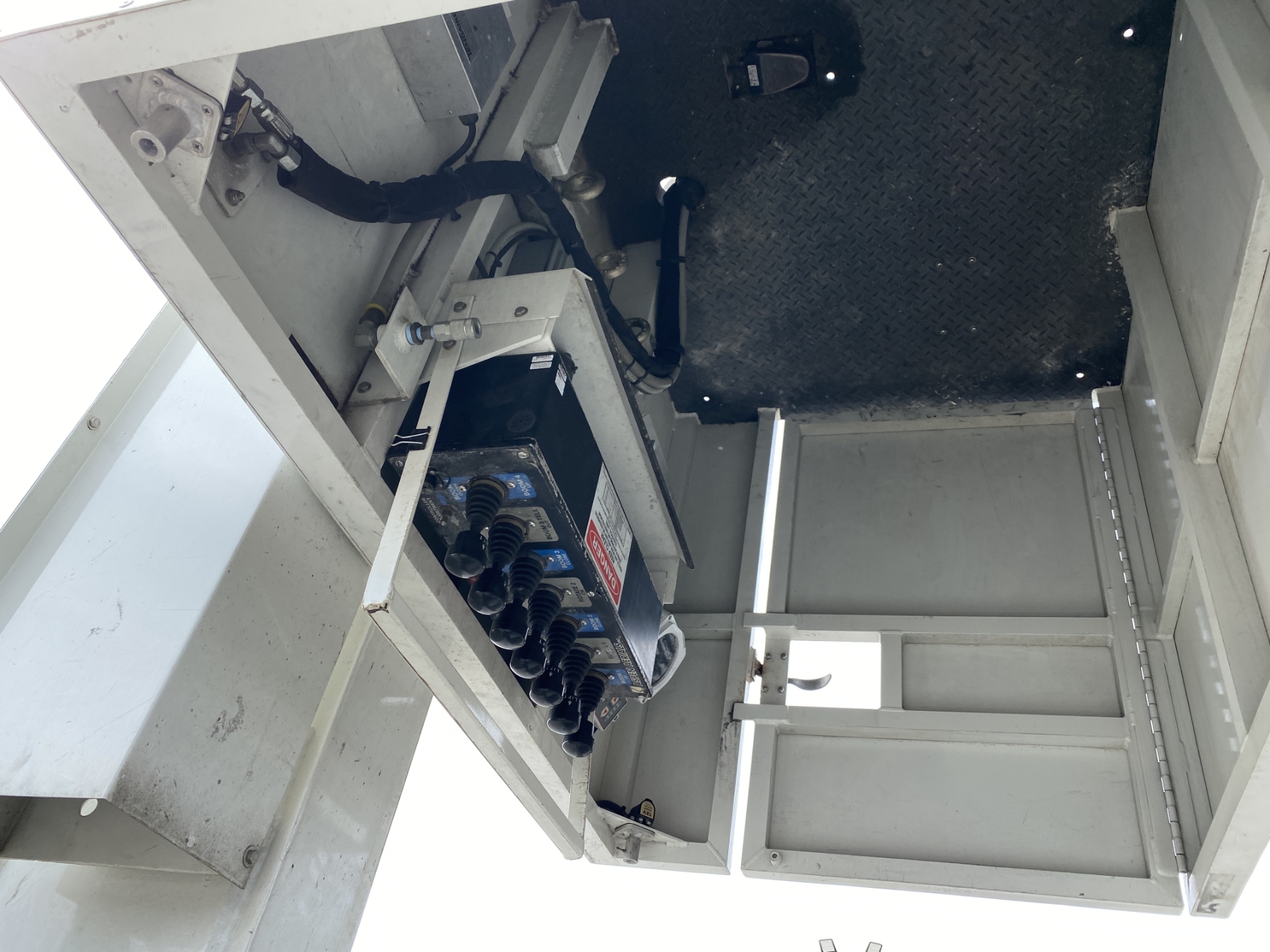 Tri Axle, International engine, Allison A/T, Aspen Aerial UB50 bucket, 600 lb. capacity, flatbed body, 11R22.5 rear tires, 425/65R22.5 front tires, (Certification is Current)