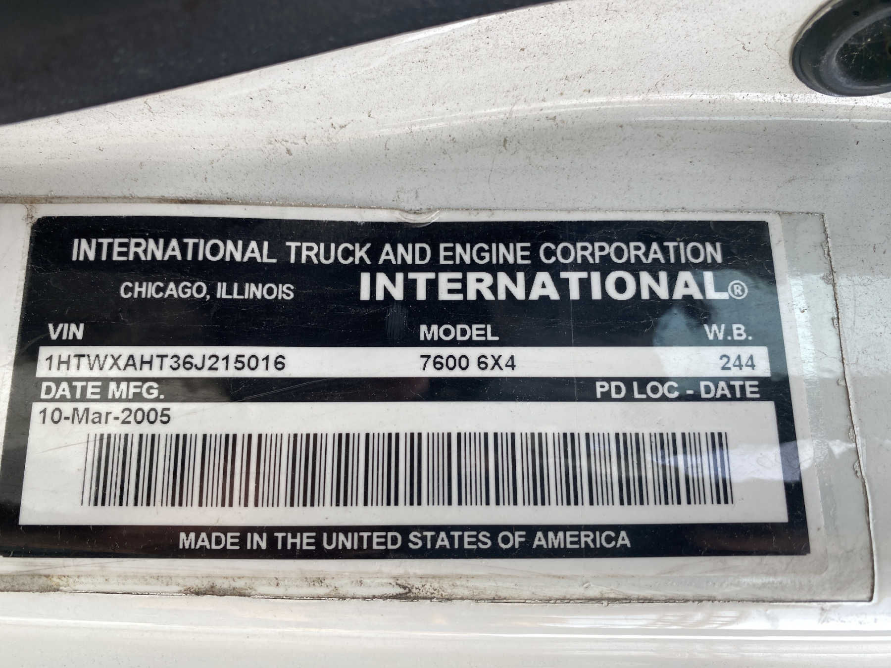 Vehicle ID Number: 1HTWXAHT36J215016