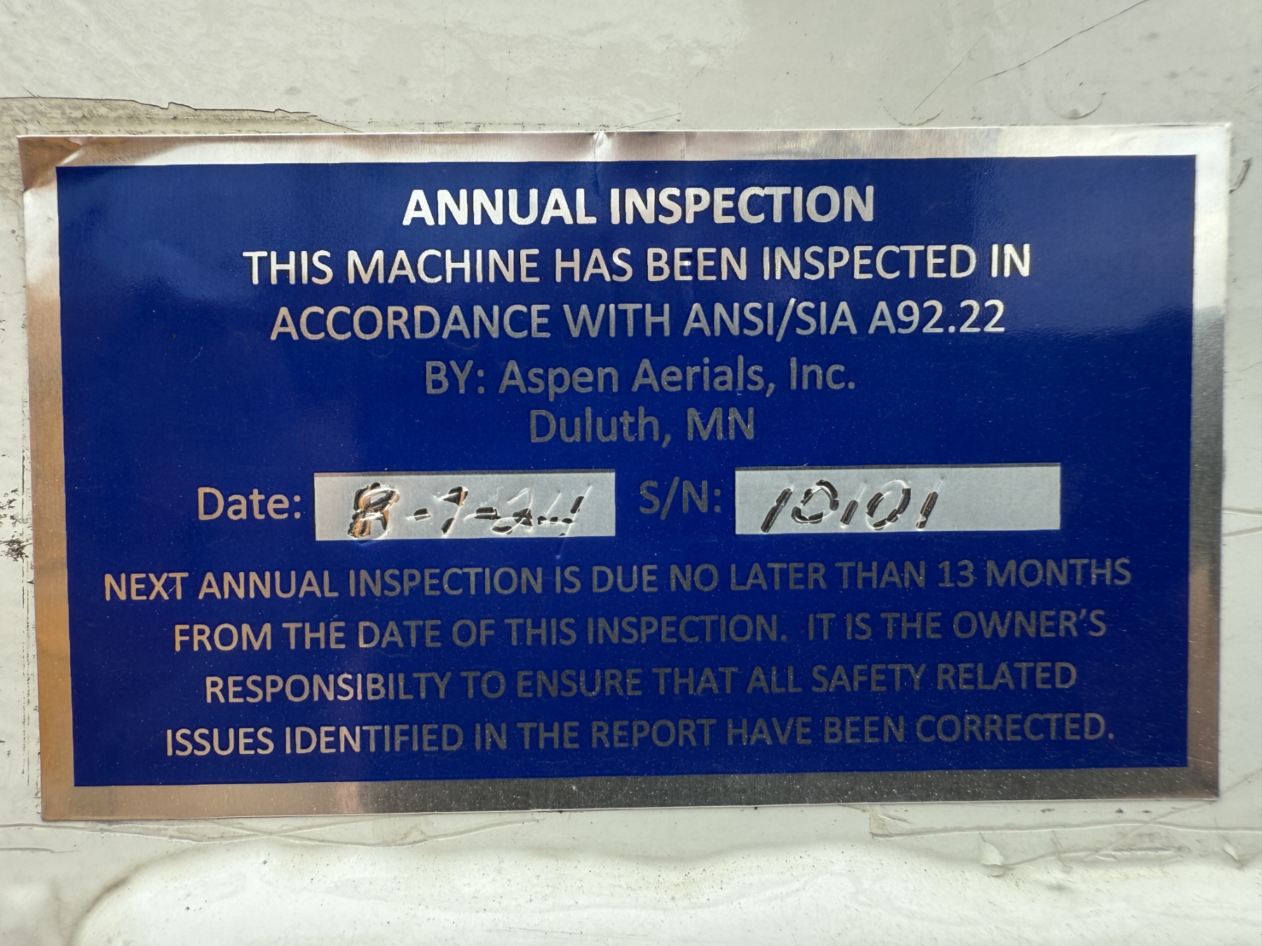 INSPECTION: The buyer agrees to rely on his personal inspection of the items in the auction.