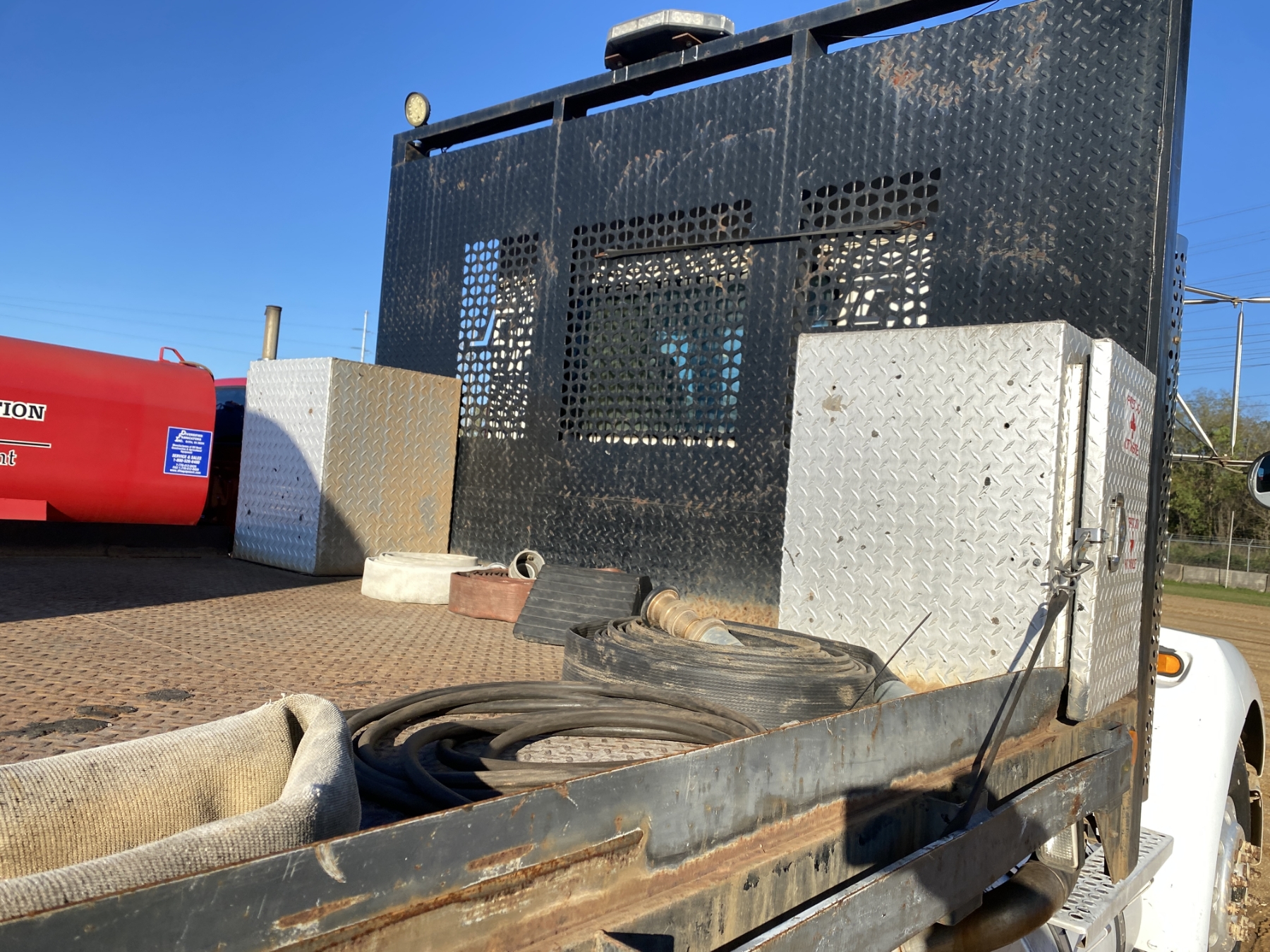 S/A, Cummins ISC engine, 10 speed trans, 18' flatbed, 500 gallon tank, Honda pump