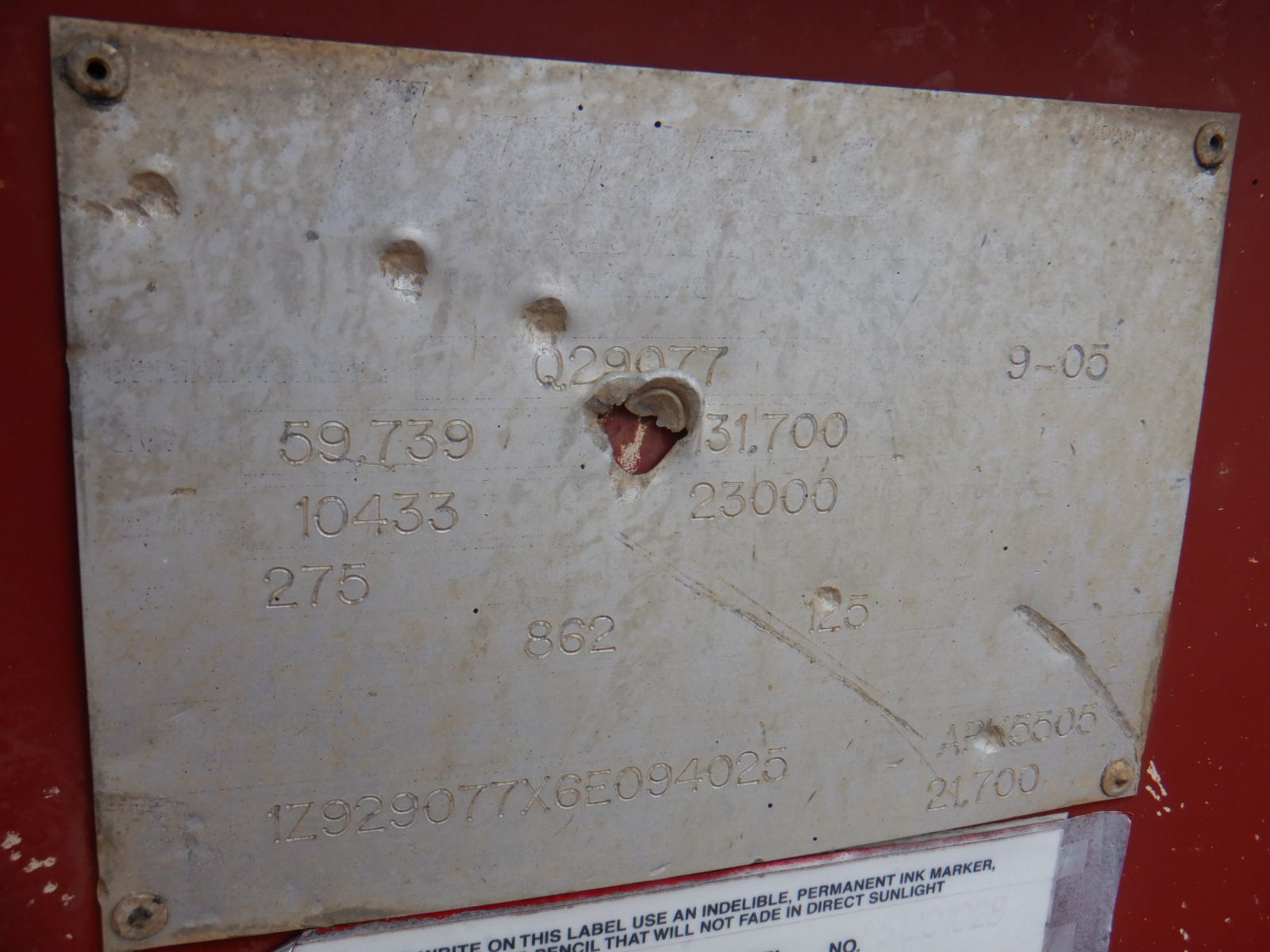 Vehicle ID Number: 1Z929077X6E094025