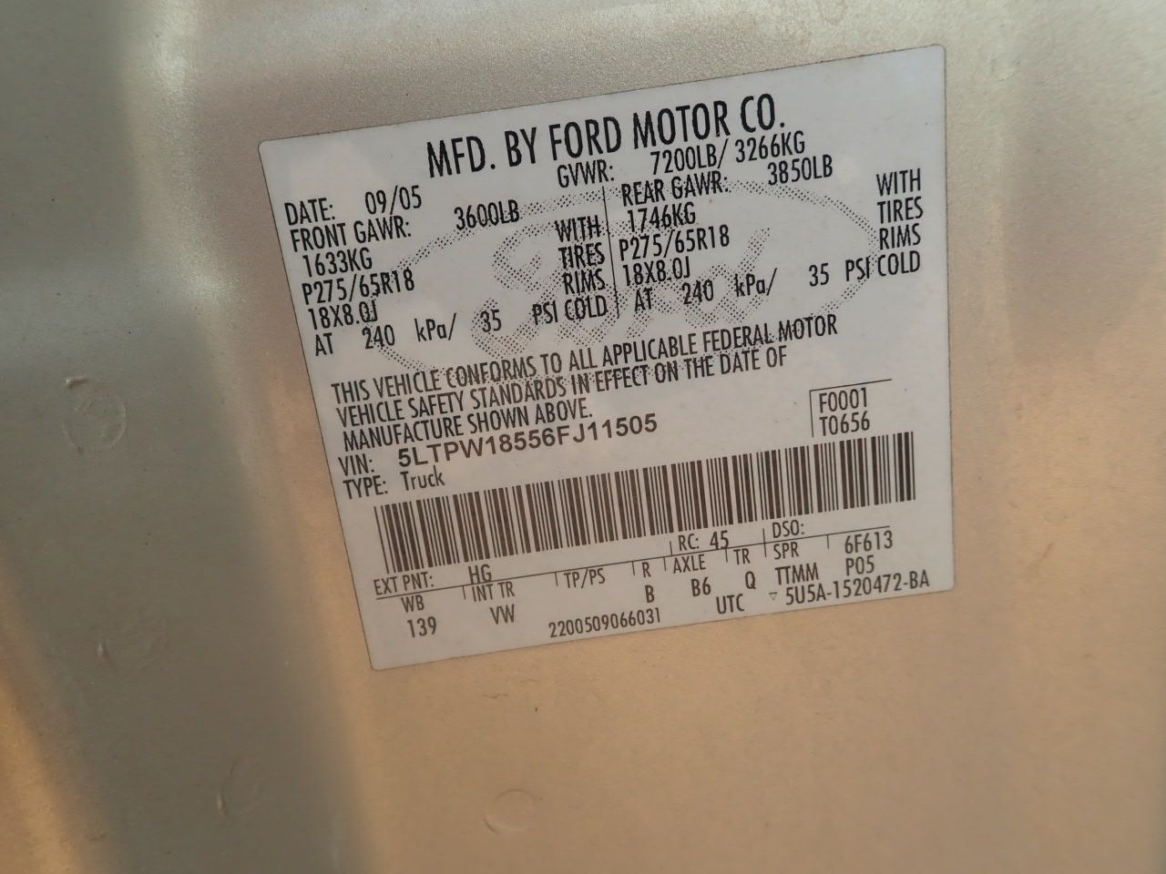 Vehicle ID Number: 5LTPW18556FJ11505