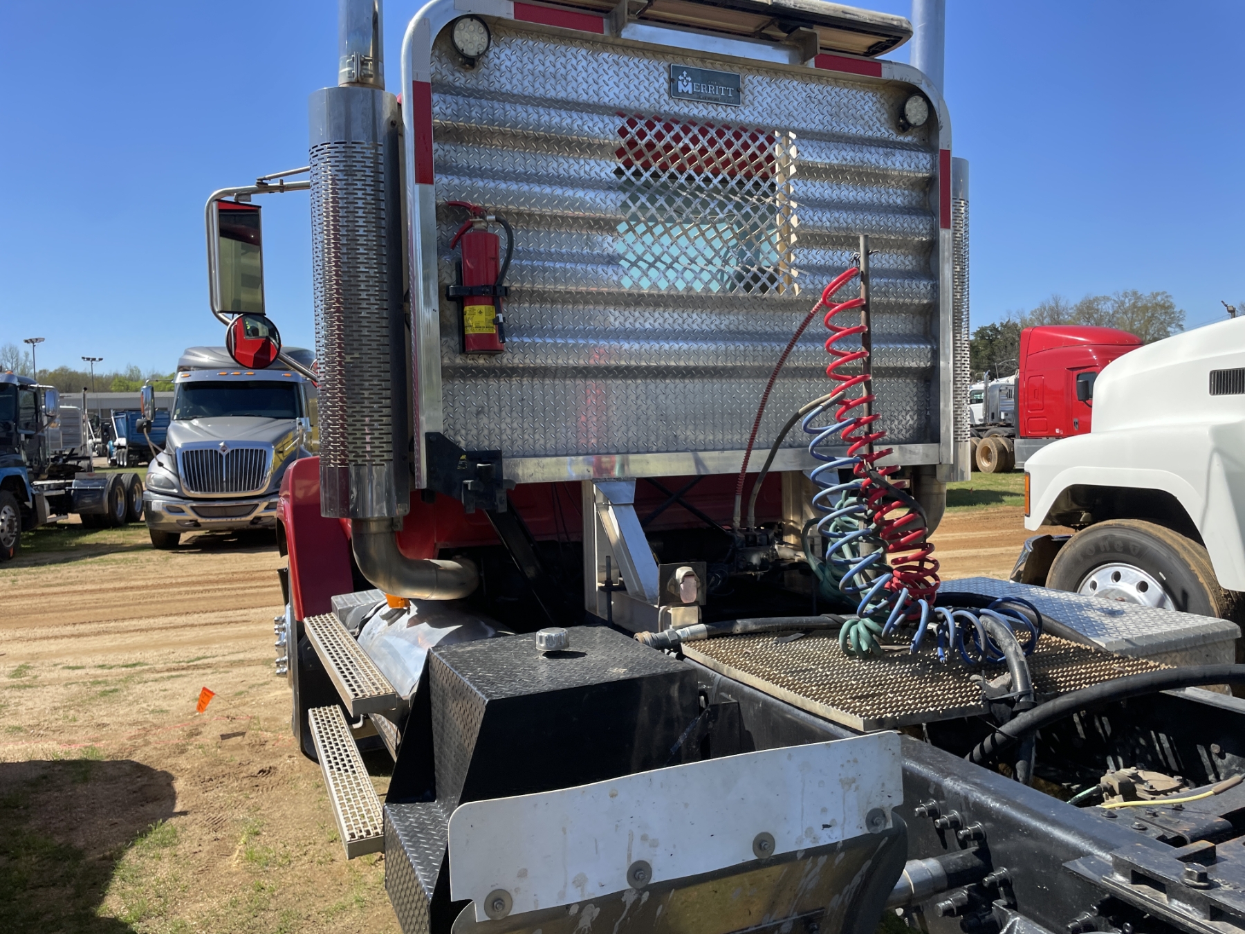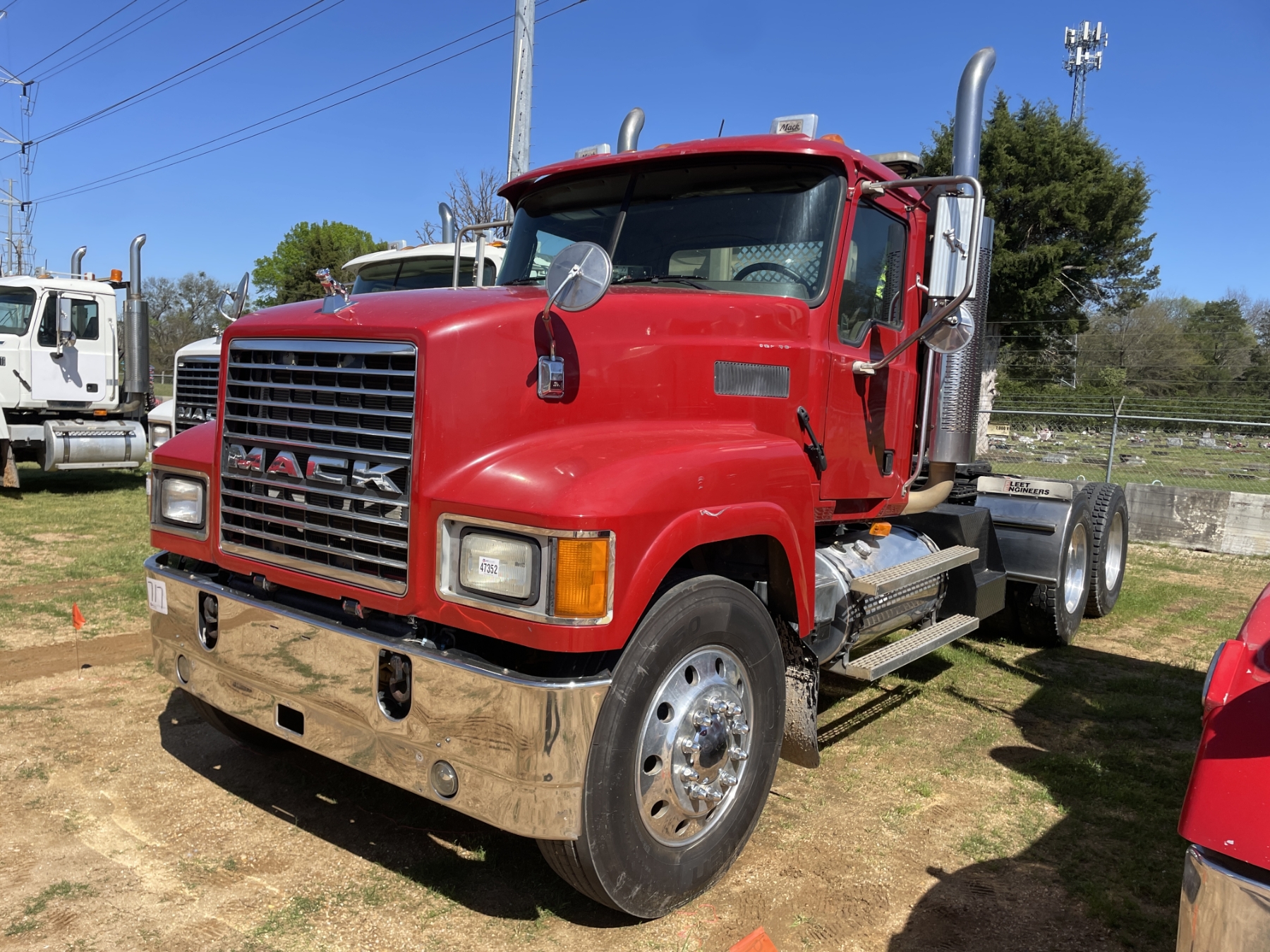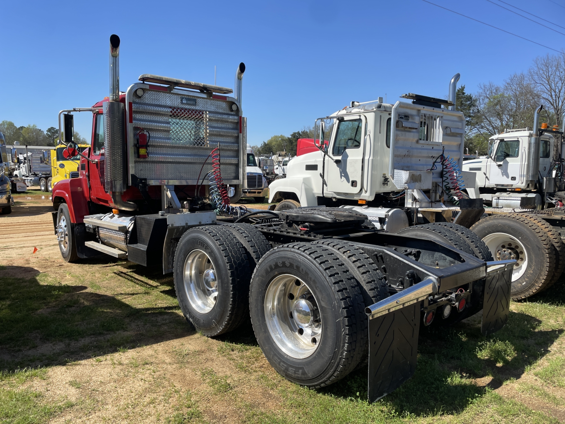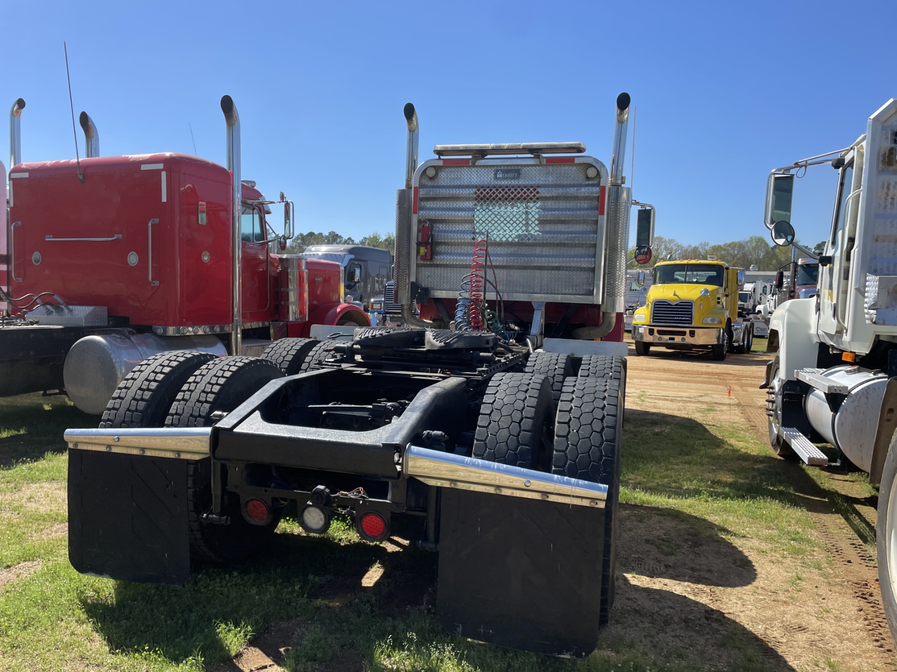 T/A, Mack AC-460 engine, 18 speed trans, 44K rears, air ride, 12K front, 215" W/B, wet kit, alum headache rack, 11R24.5 tires, all alum