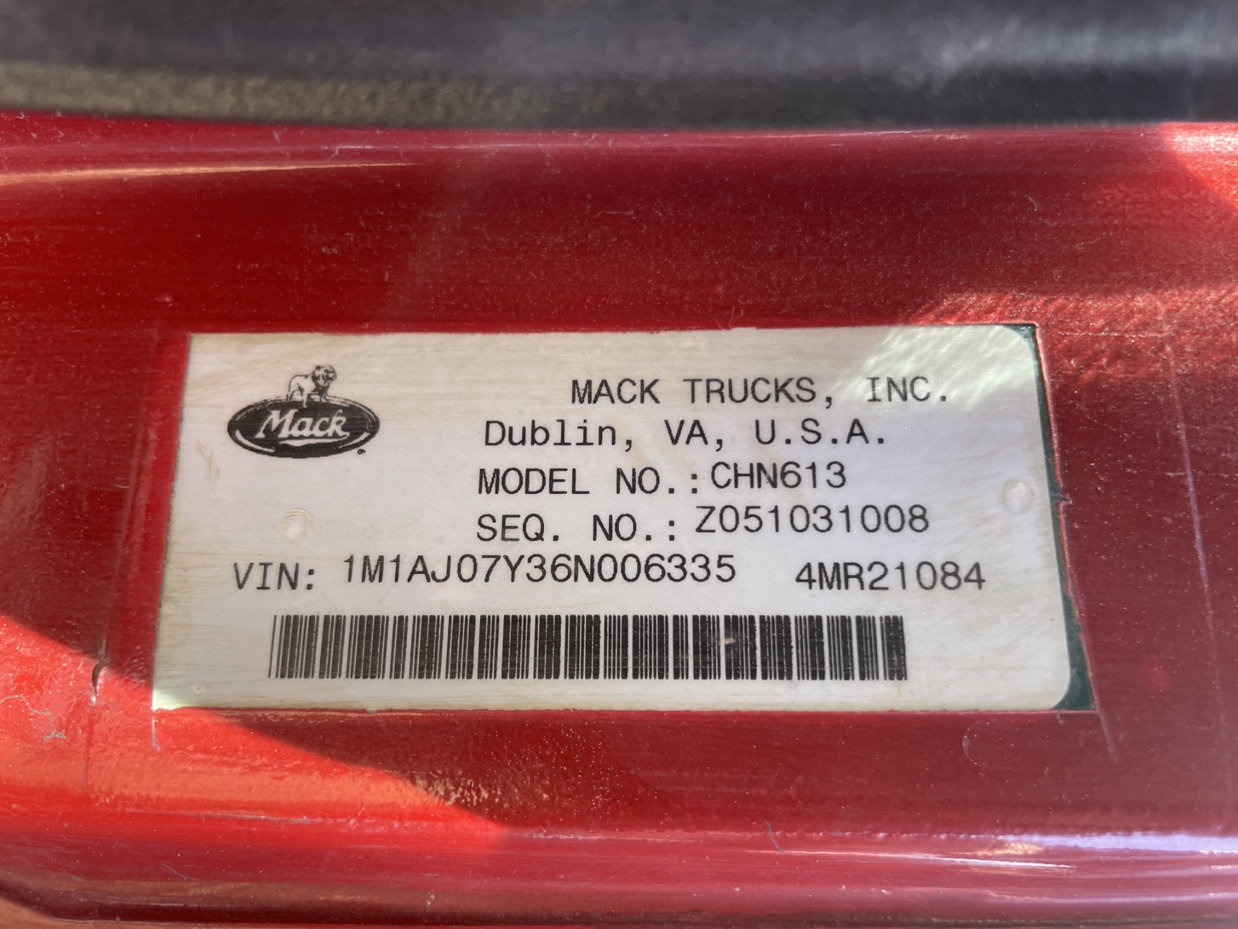 Vehicle ID Number: 1M1AJ07Y36N006335