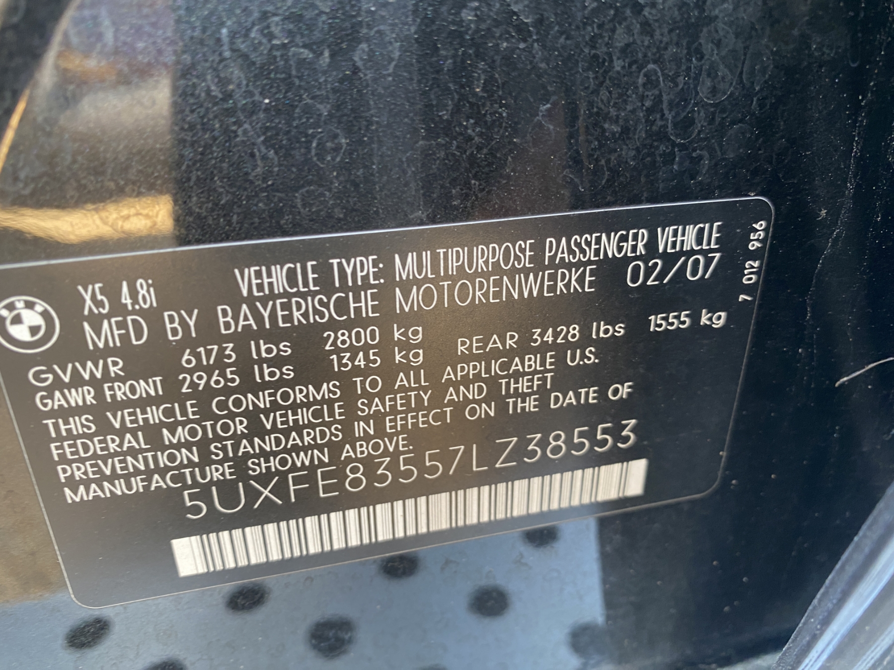 Vehicle ID Number: 5UXFE83557LZ38553