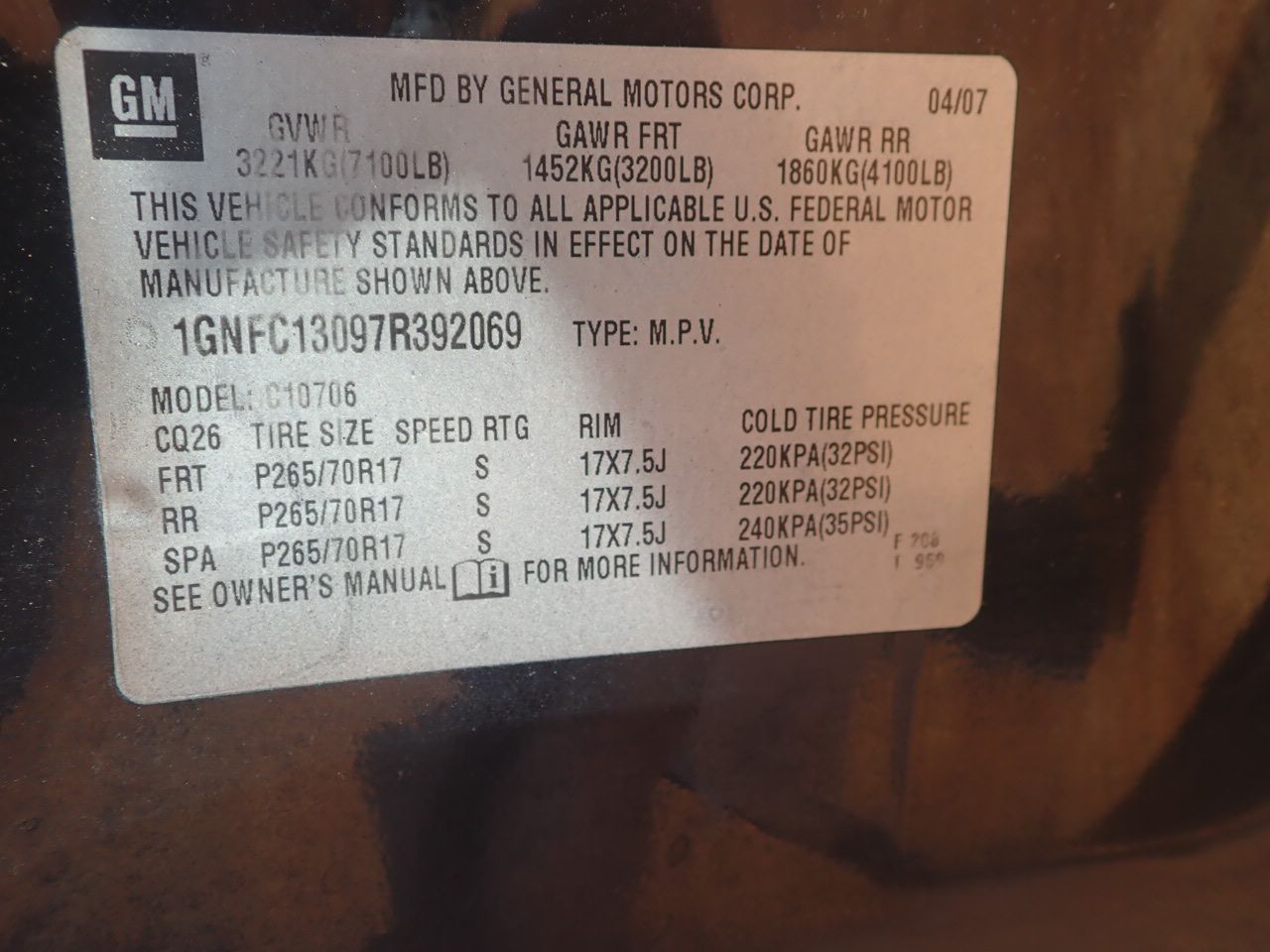 Vehicle ID Number: 1GNFC13097R392069