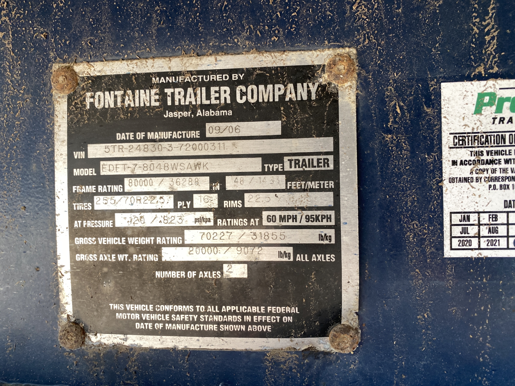 T/A, 48' length, 102" width, spread axle, 255/70R22.5 tires