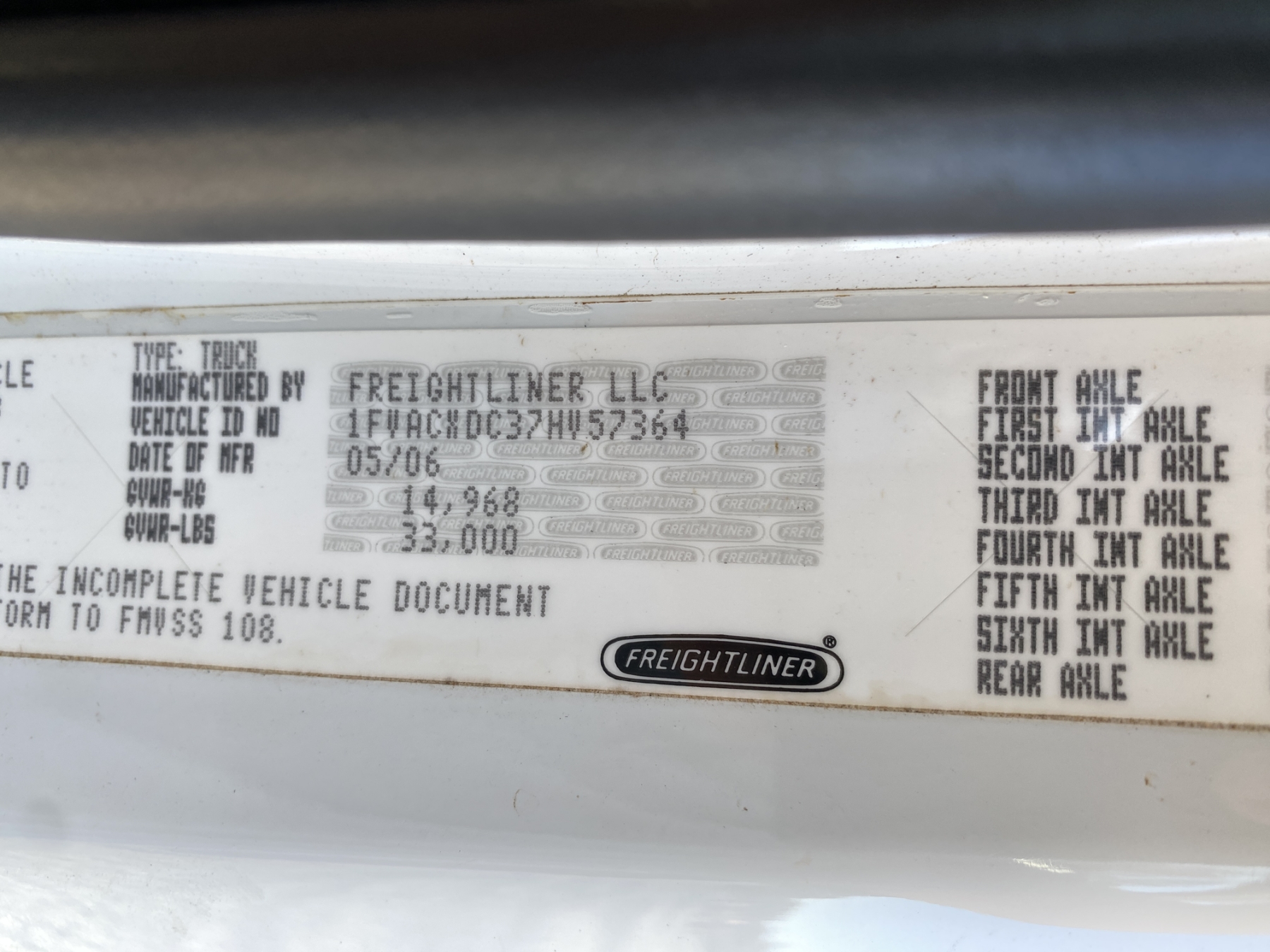 Vehicle ID Number: 1FVACXDC37HV57364