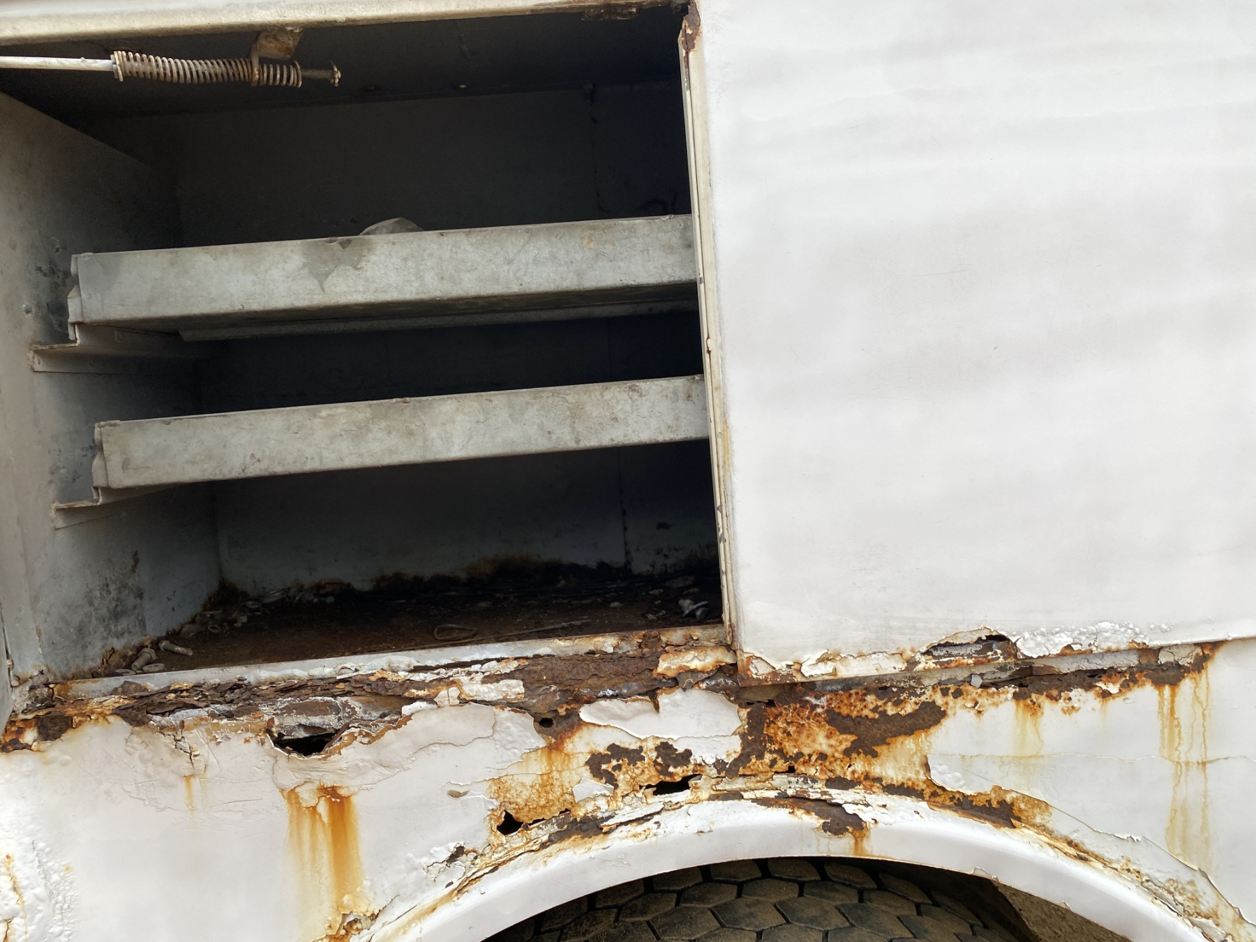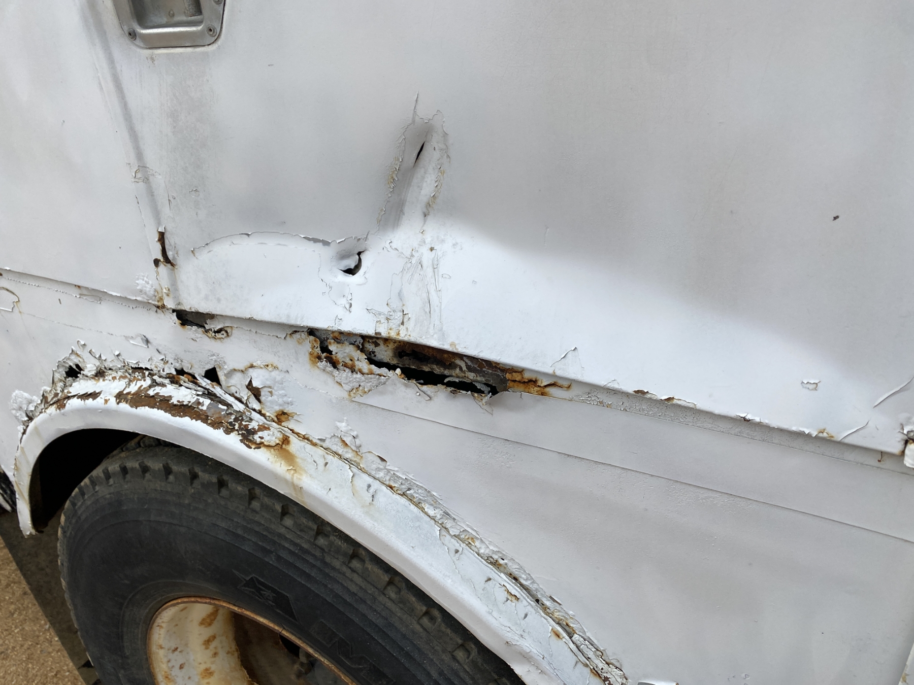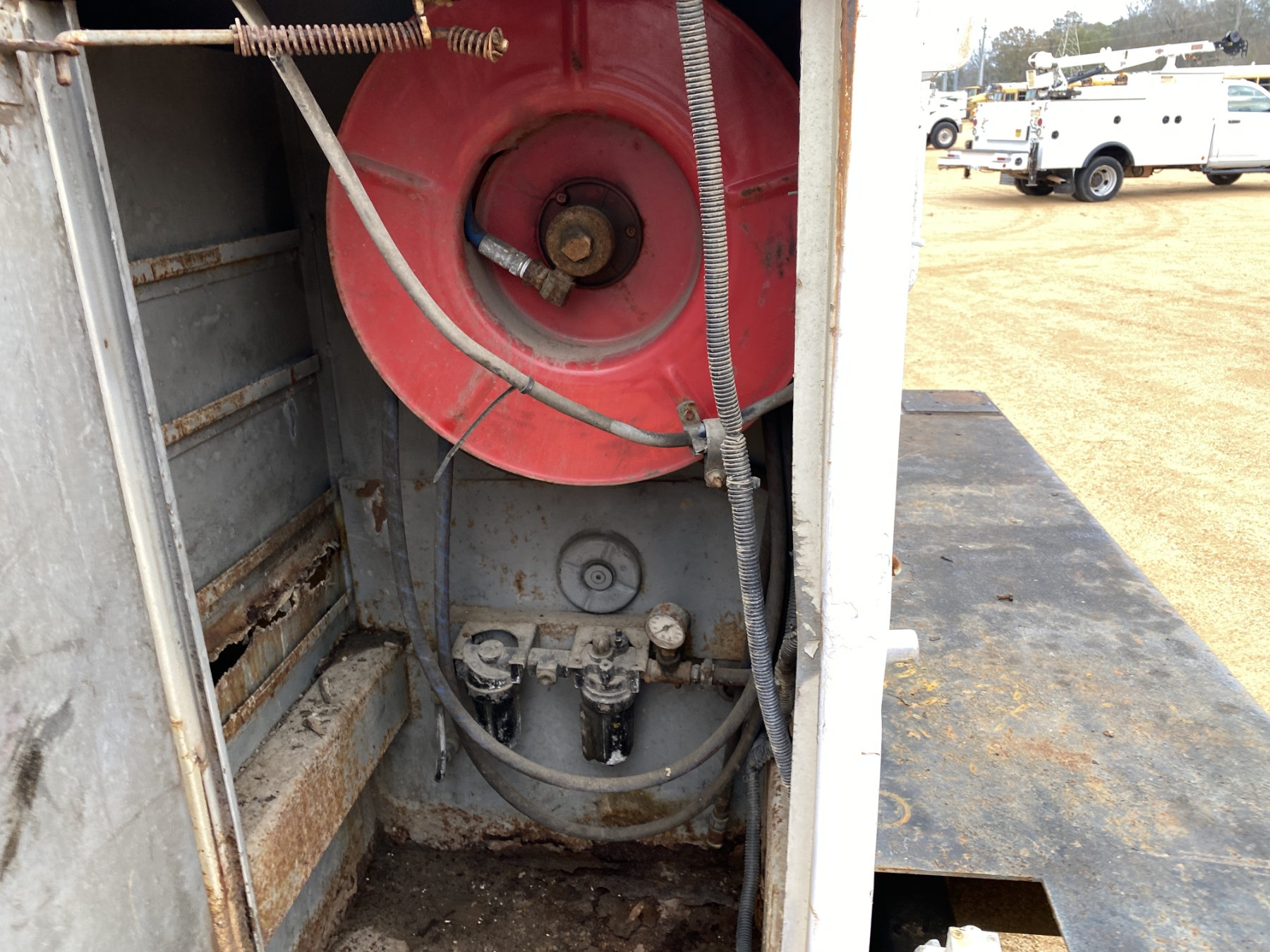 Mercedes-Benz OM906 LA engine, 6 speed trans, Reading service body, Auto Crane service crane, outriggers