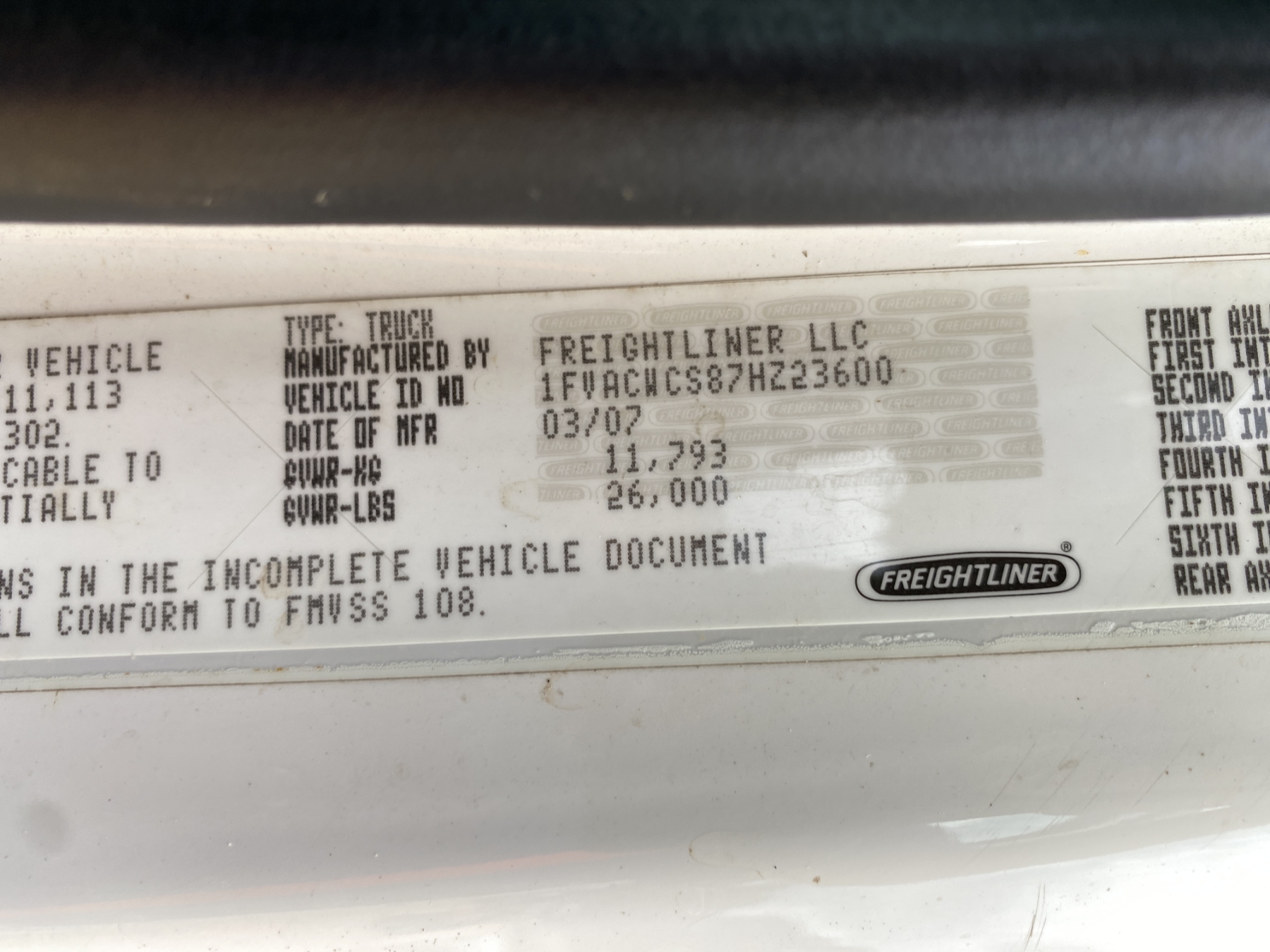 Vehicle ID Number: 1FVACWCS87HZ23600