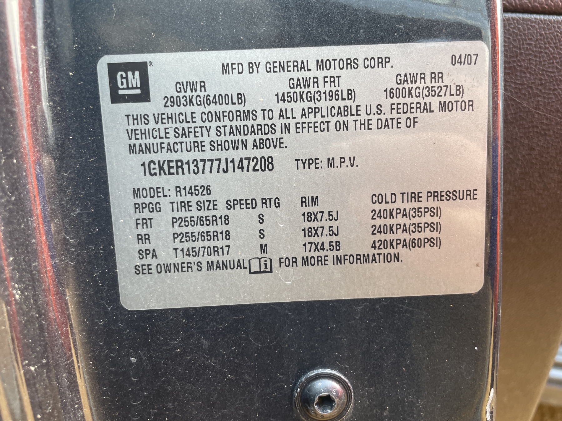 Vehicle ID Number: 1GKER13777J147208