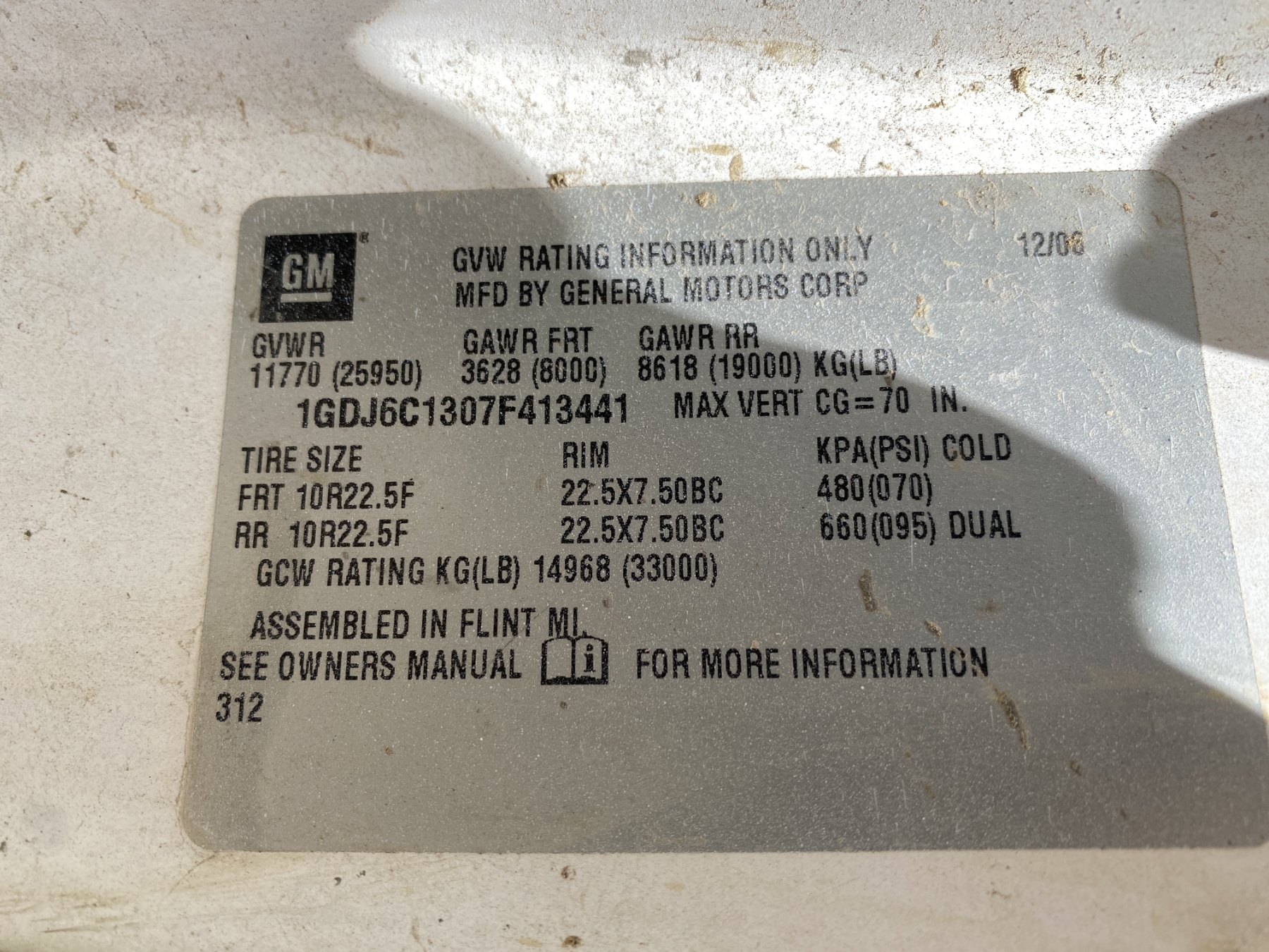 Vehicle ID Number: 1GDJ6C1307F413441
