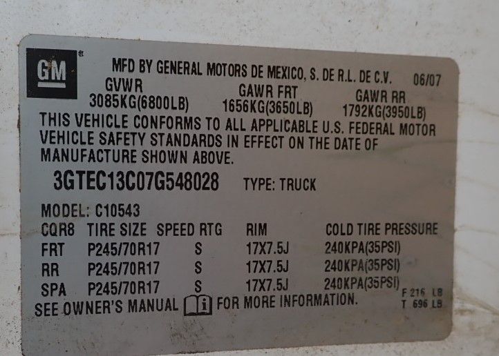 Vehicle ID Number: 3GTEC13C07G548028