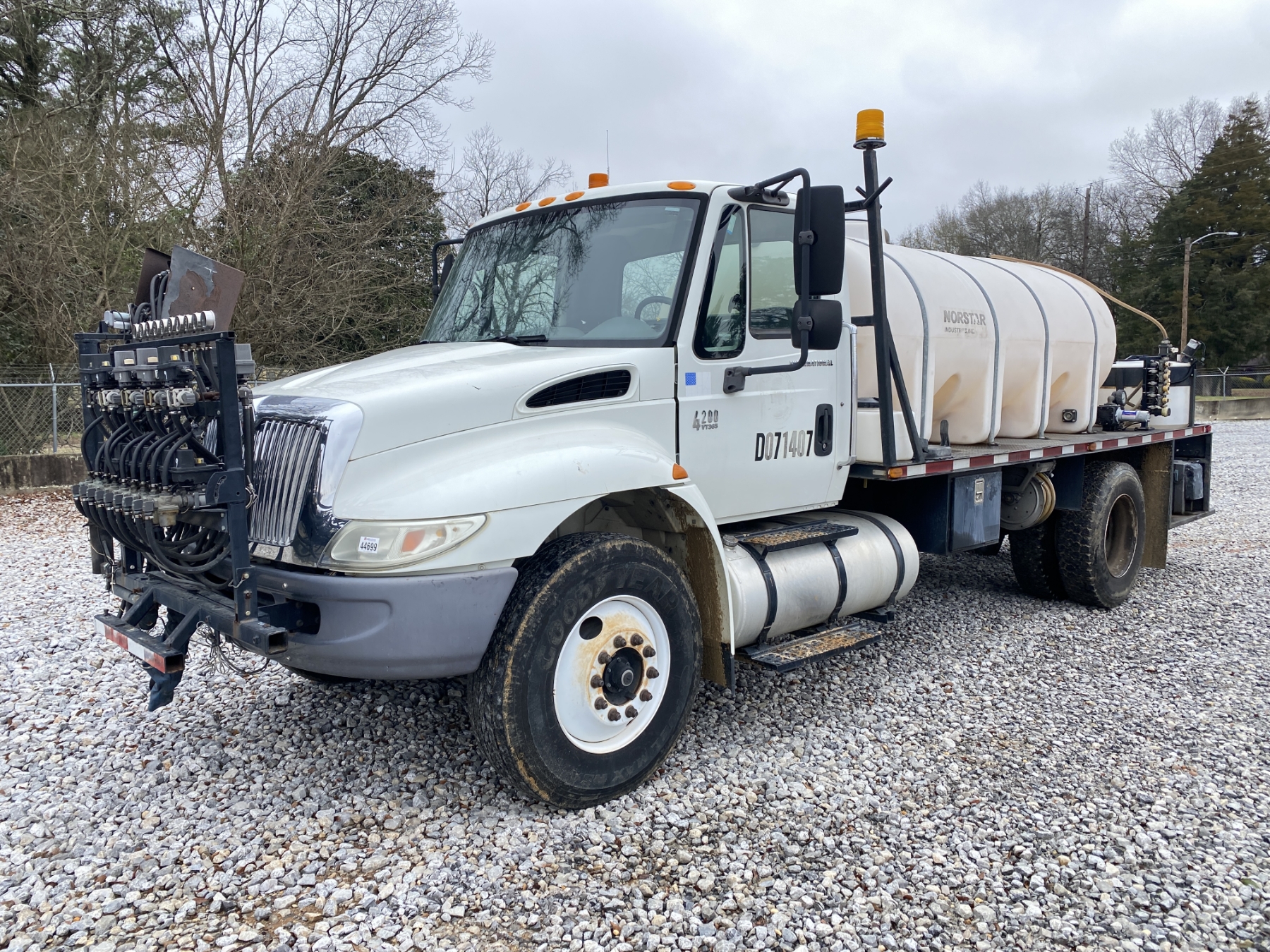 S/A, International VT365 engine, A/T, 16' flatbed, Norstar spray system, 1,500 gallon tank, (2) 70 gallon product tanks, (1) 30 gallon product tank