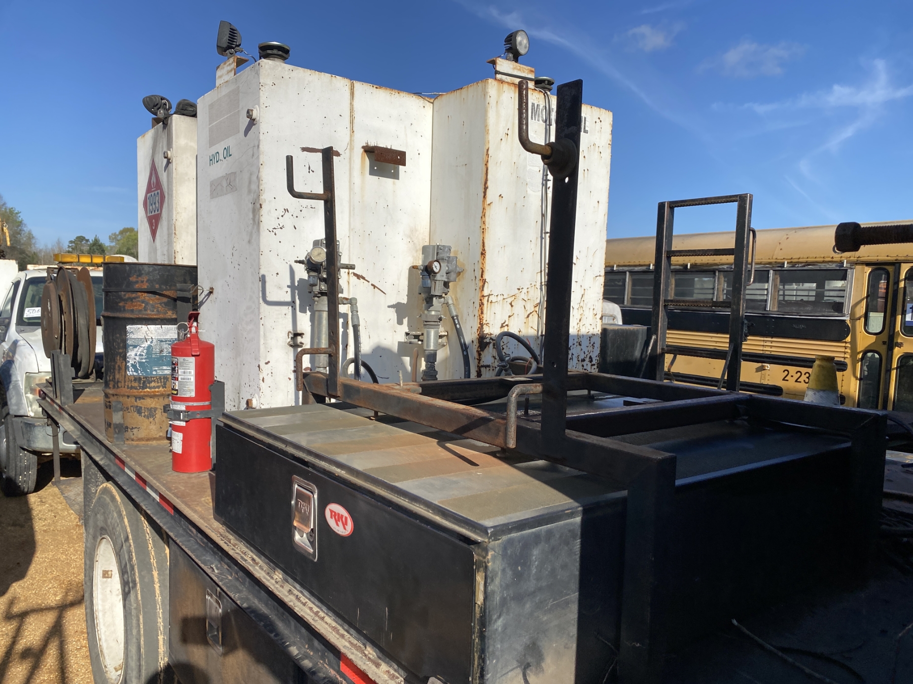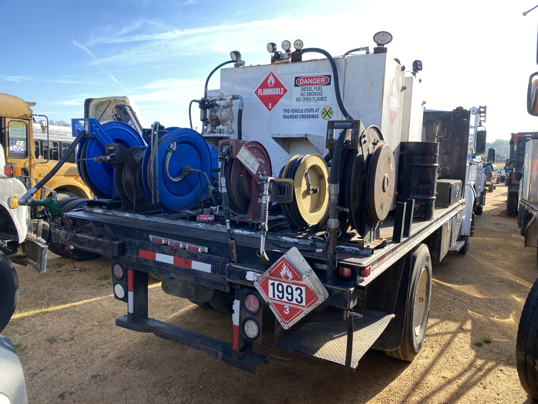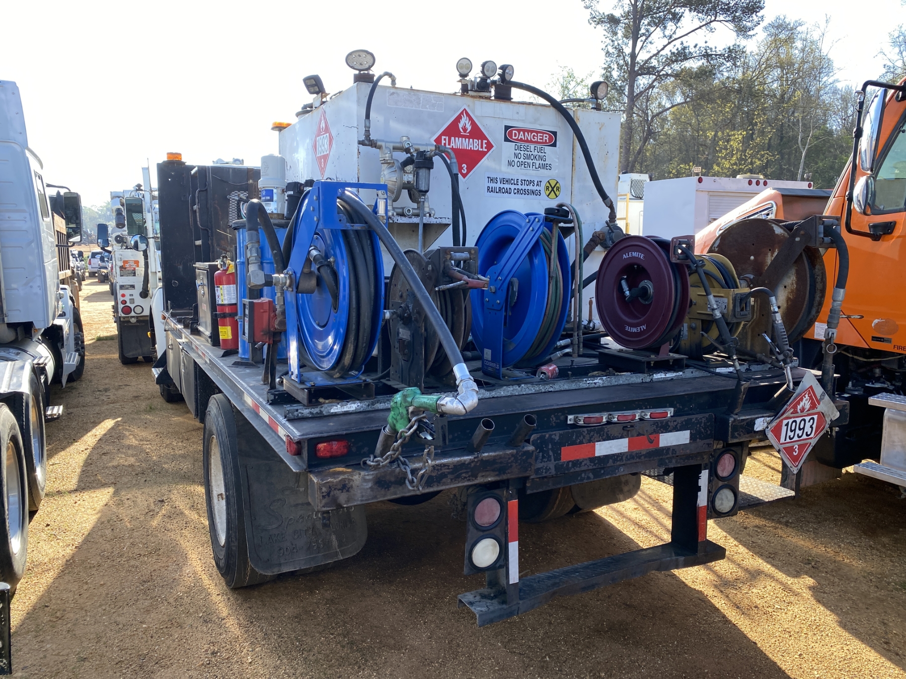 S/A, Cat engine, 6 speed trans, flatbed body, fuel tank, air compressor, grease tank, (2) product tanks, hose reels, (Inoperable)