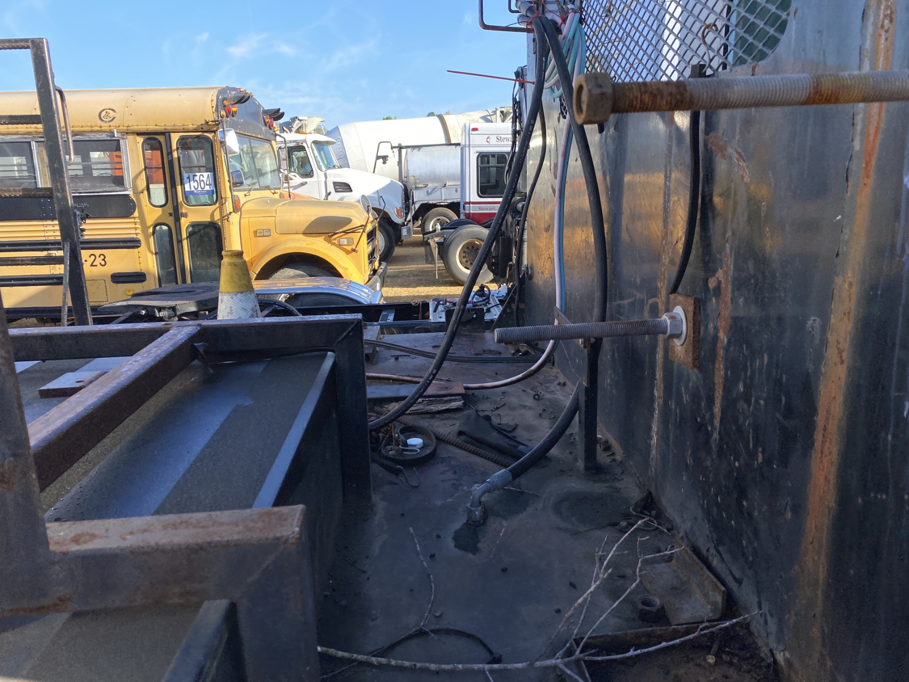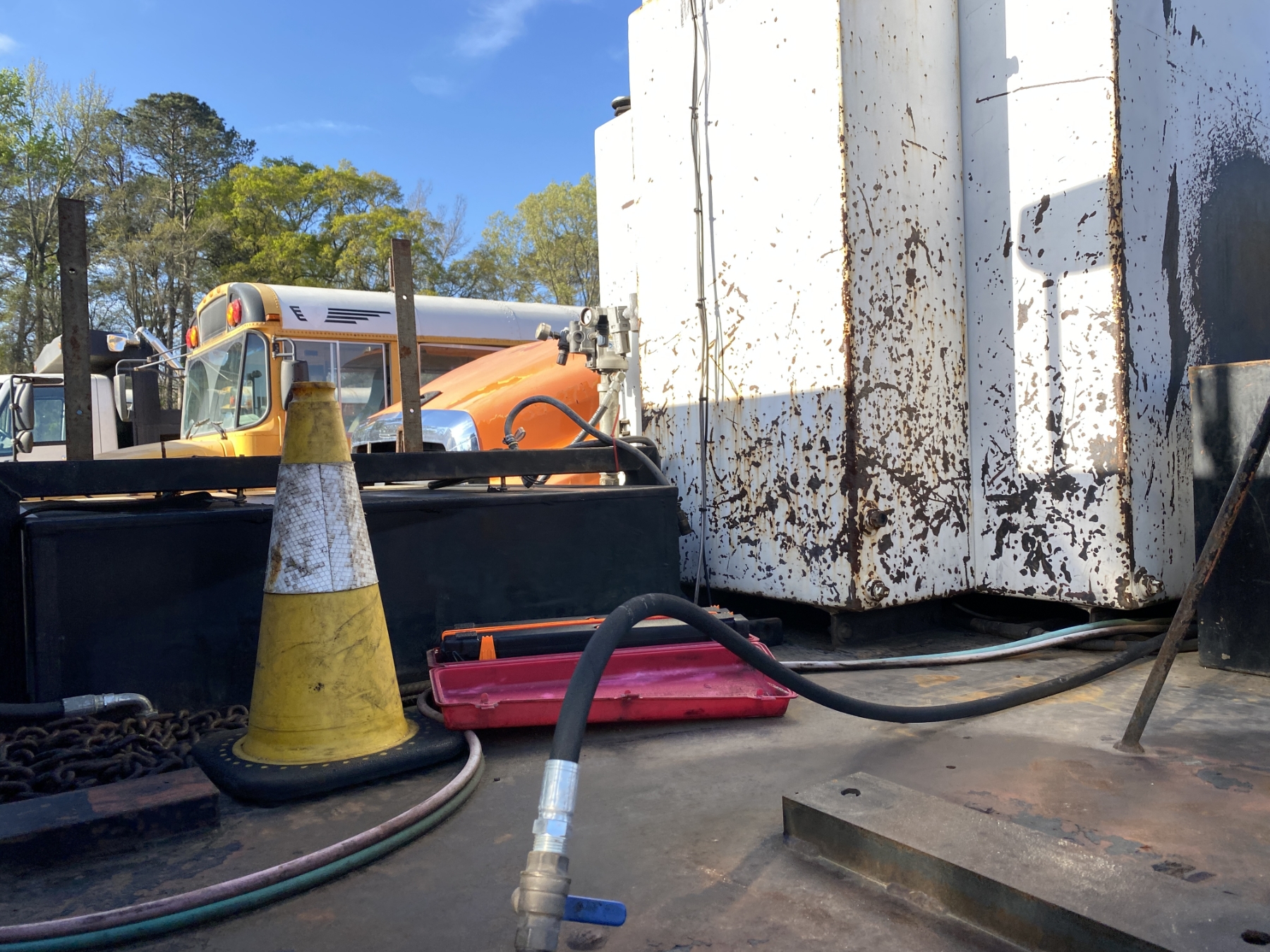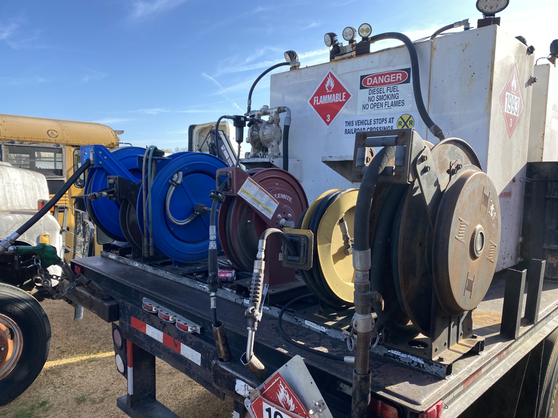 S/A, Cat engine, 6 speed trans, flatbed body, fuel tank, air compressor, grease tank, (2) product tanks, hose reels, (Inoperable)