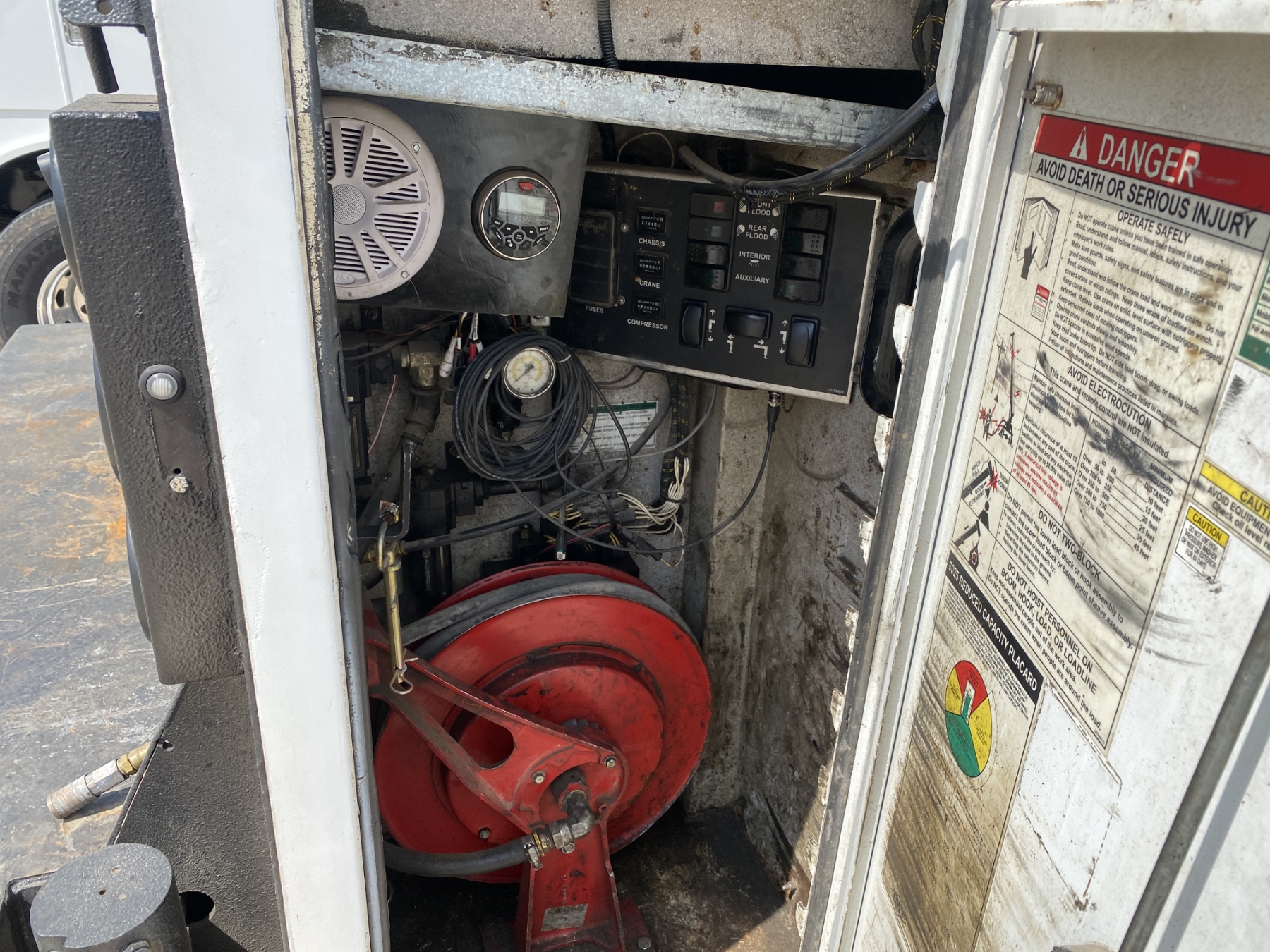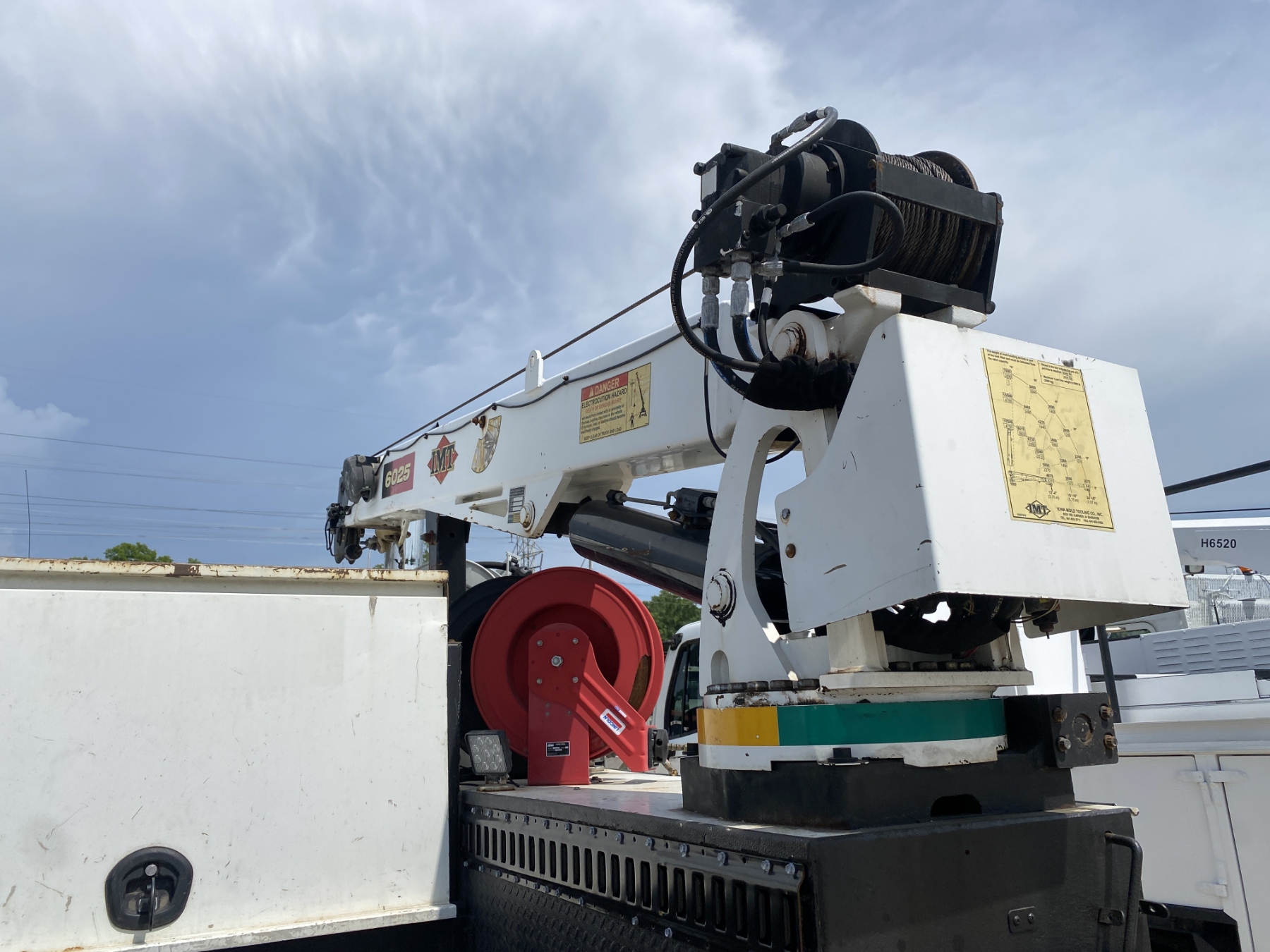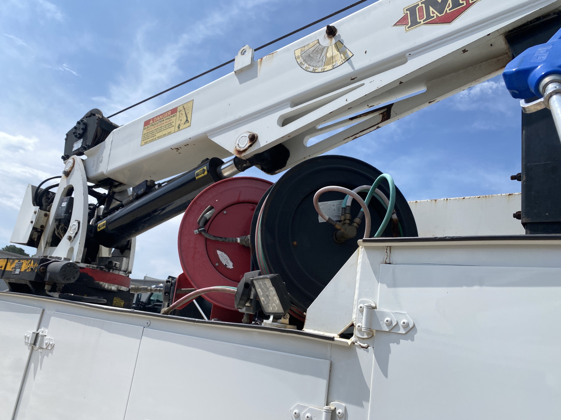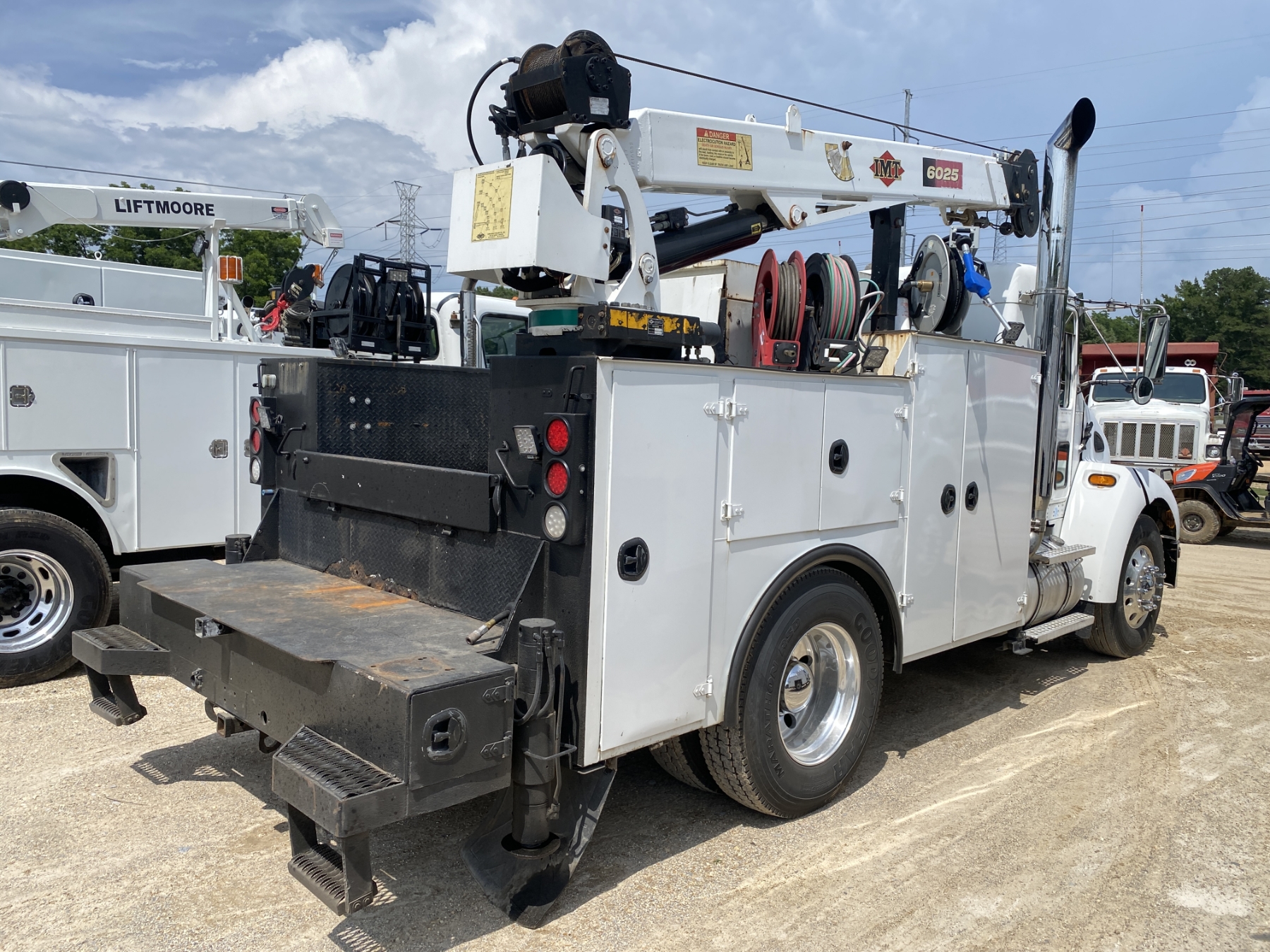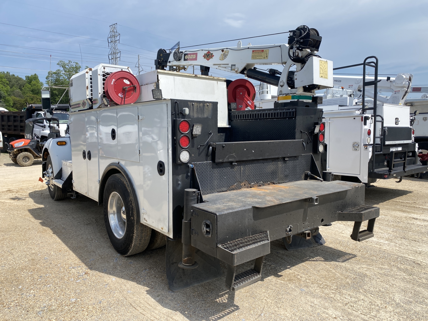 S/A, Cat C7 engine, Allison A/T, 33K GVWR, IMT service body, IMT 6025 crane, IMT air compressor, (3) hose reels, 11R22.5 tires