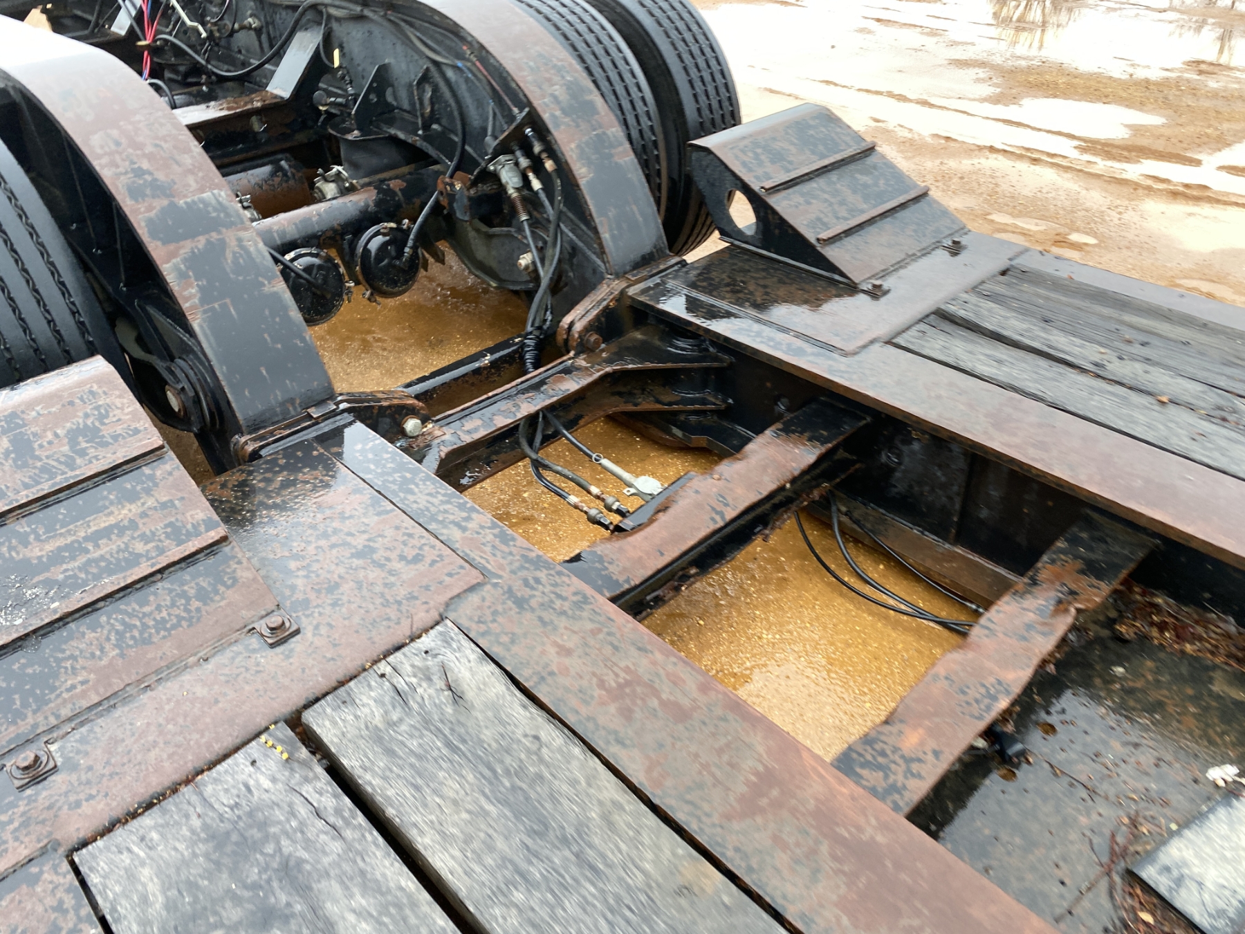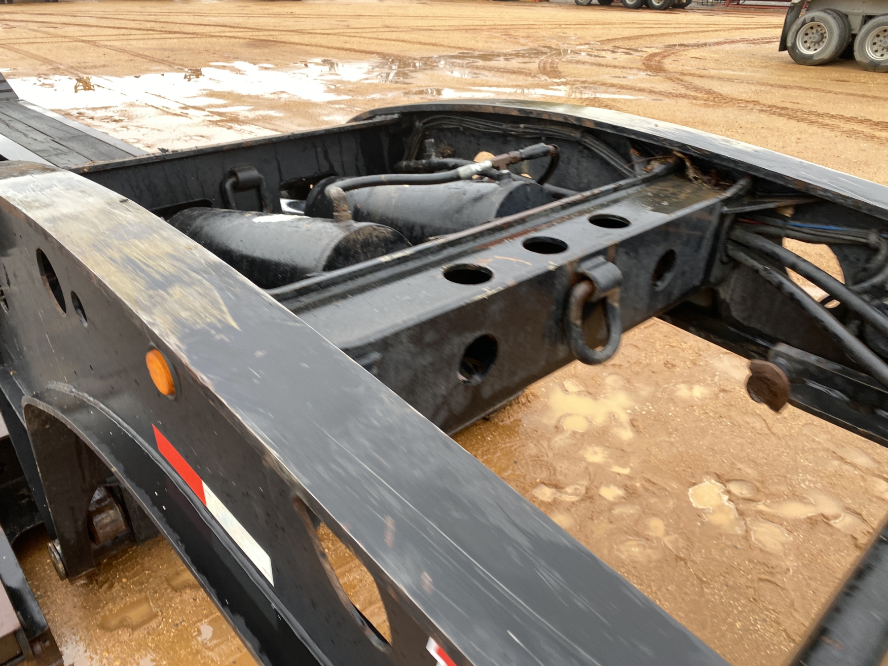 Tri Axle, detach, NGB, 24' well, 102" width, excavator trough, air ride, 275/70R22.5 tires
