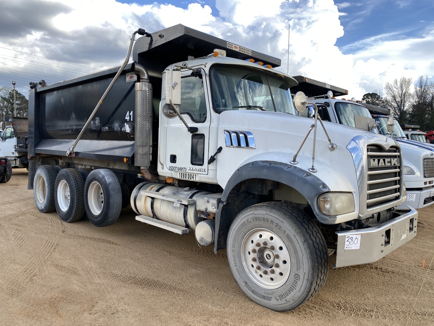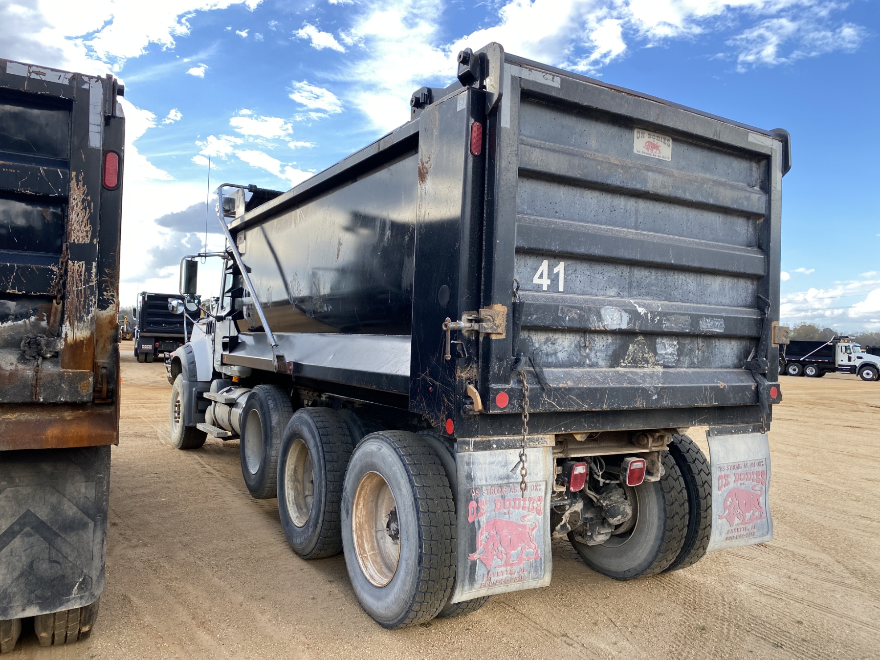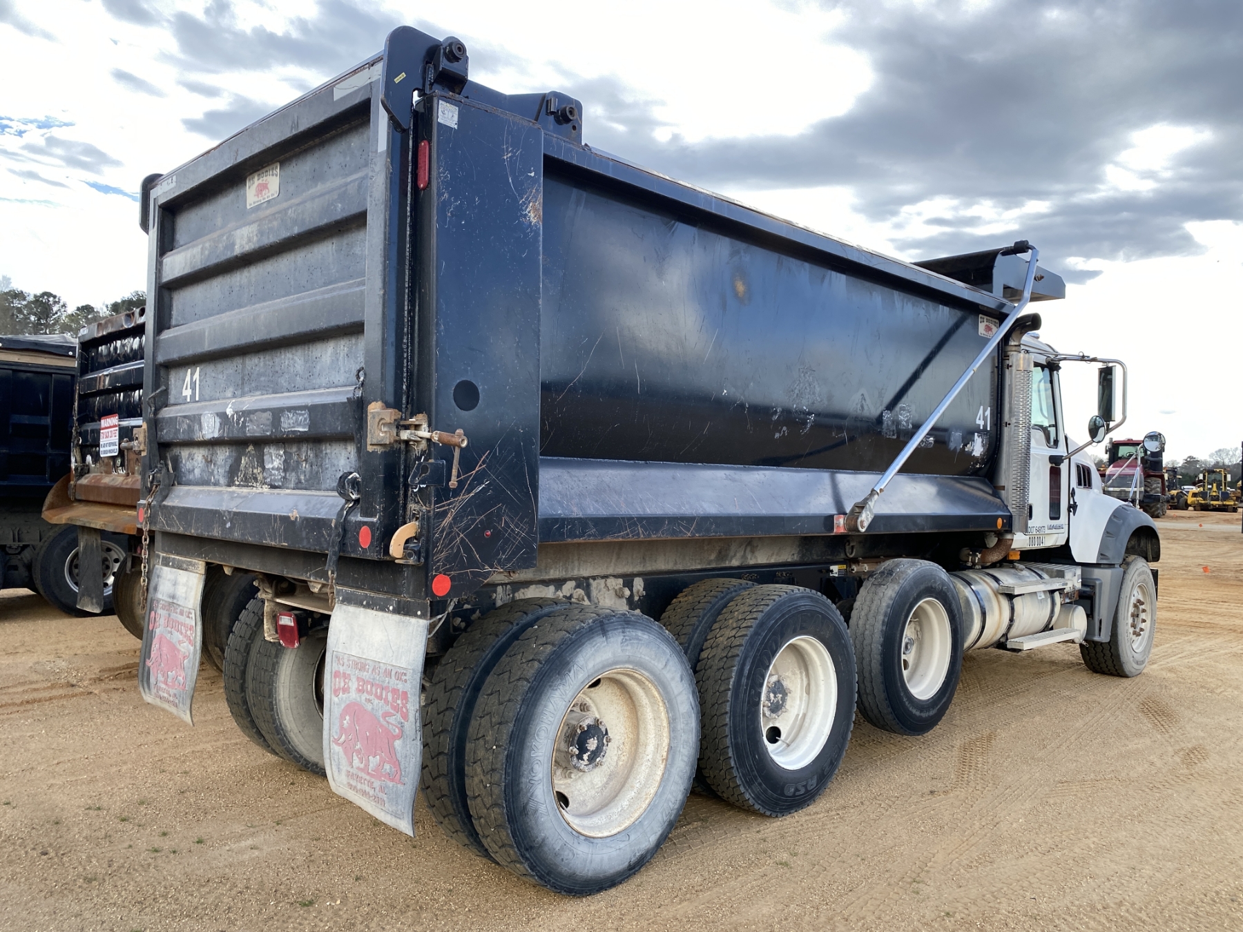 Tri Axle, Mack MP7 engine, Mack 10 speed trans, 46K rears, 18K front, 16' Hard Ox body, high-lift gate, 11R24.5 rear tires, 385/65R22.5 front tires