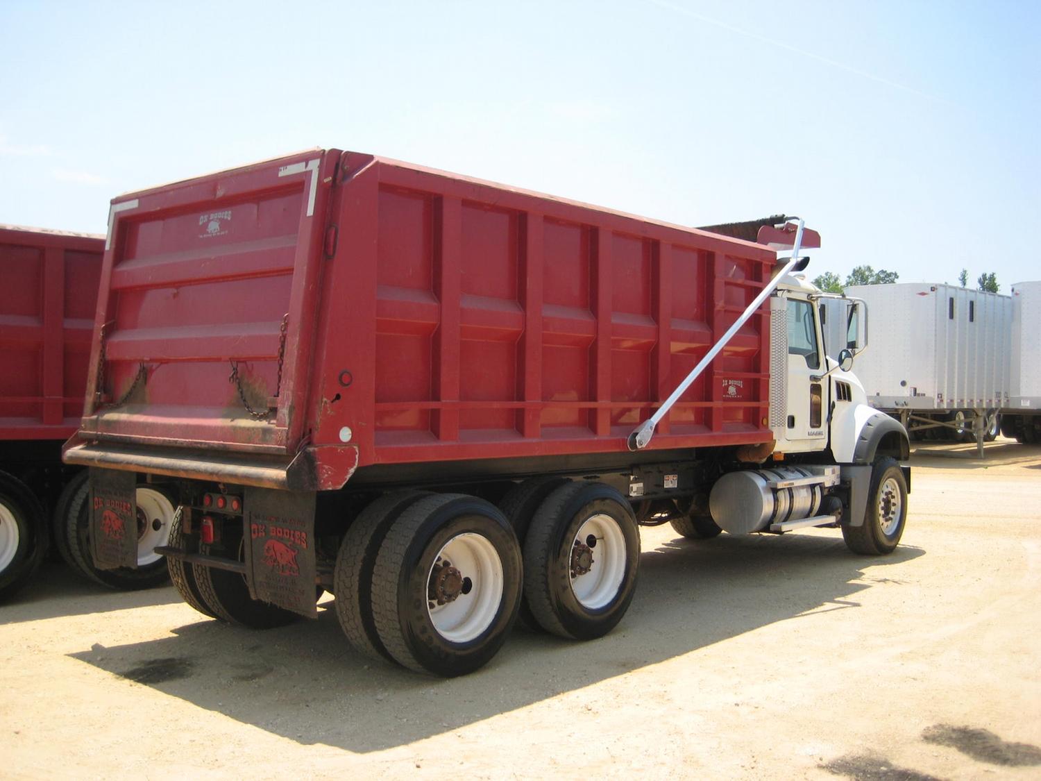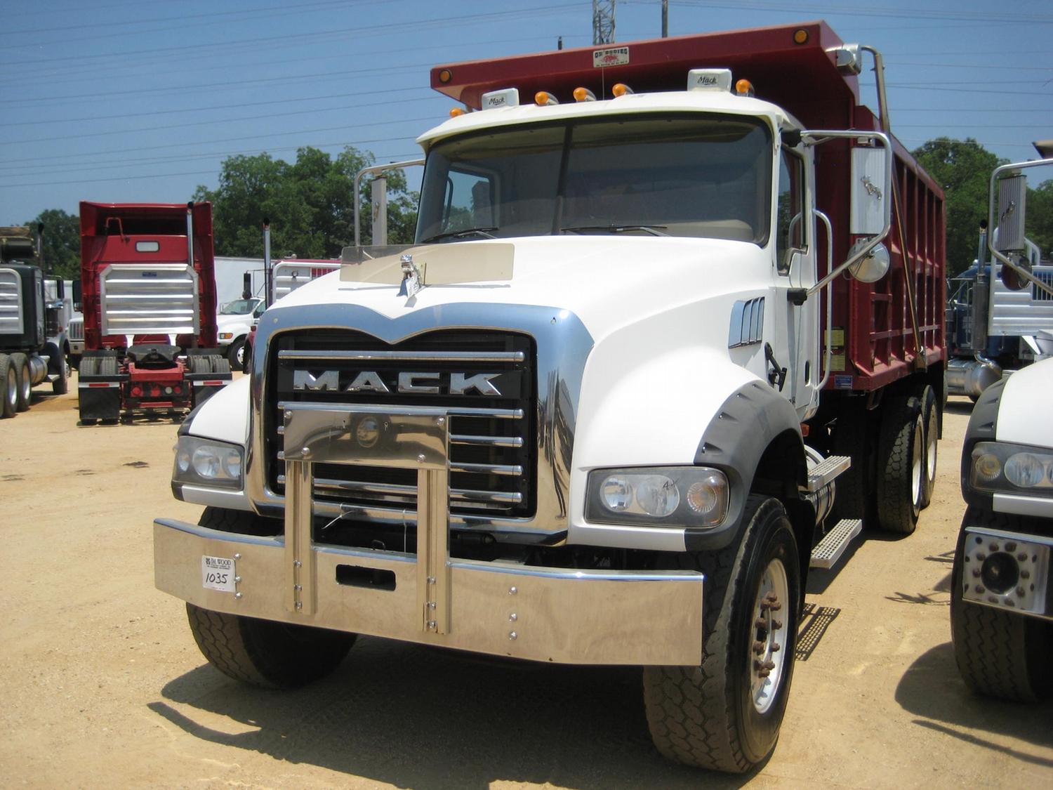 2007 MACK CTP713 T/A DUMP, S/N 1M2AT04C47M001490, 405 HP MACK ENG, 10 SPD MACK TRANS, 44K REARS, 18K FRONT, INCREASED AIR CAPACITY AND FRAME CLEARANCE FOR LOCAL INSTALLATION OF LIFT AXLE, ENGINE BRAKE, A/C, P/S, 16' OX DUMP BODY, ELEC TARP, AIR TAILGATE, 385/65R22.5 FRONT TIRES, FRONT ALUM DISC WHEELS, 11R24.5 REAR TIRES, REAR STEEL DISC WHEELS, ODOMETER 101,565 MI (COUNTY OWNED)