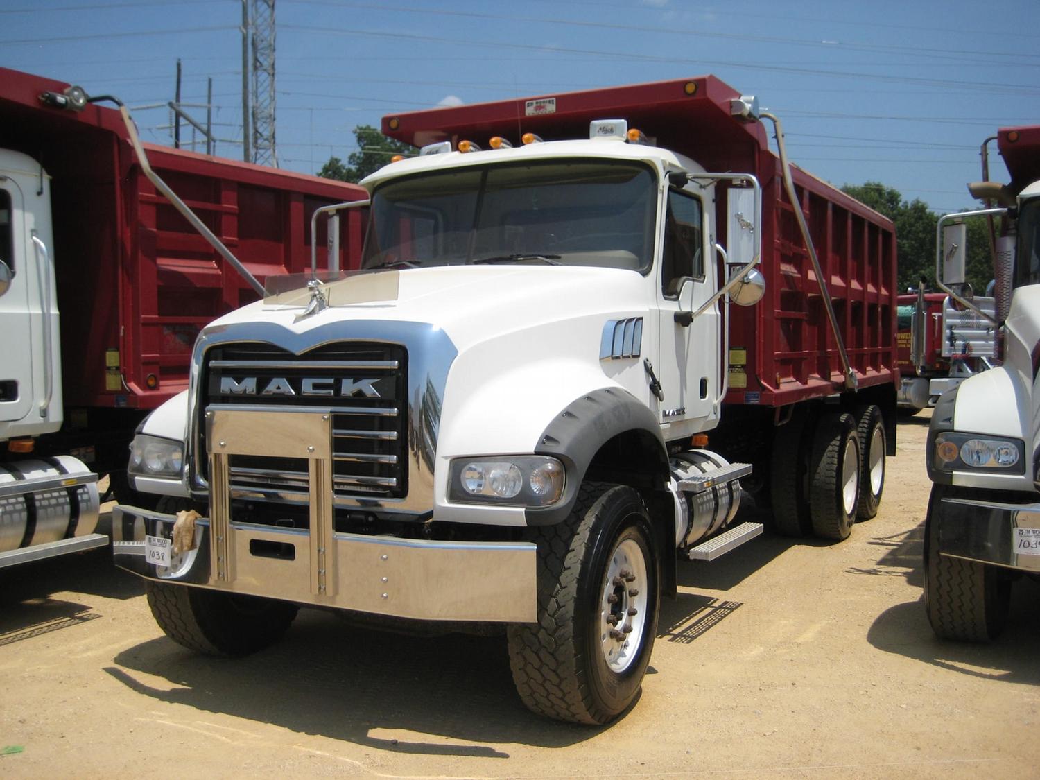 2007 MACK CTP713 T/A DUMP, S/N 1M2AT04C87M001489, 405 HP MACK ENG, 10 SPD MACK TRANS, 44K REARS, 18K FRONT, INCREASED AIR CAPACITY AND FRAME CLEARANCE FOR LOCAL INSTALLATION OF LIFT AXLE, ENGINE BRAKE, A/C, P/S, 16' OX DUMP BODY, ELEC TARP, AIR TAILGATE, 385/65R22.5 FRONT TIRES, FRONT ALUM DISC WHEELS, 11R24.5 REAR TIRES, REAR STEEL DISC WHEELS, ODOMETER 123,735 MI (COUNTY OWNED)