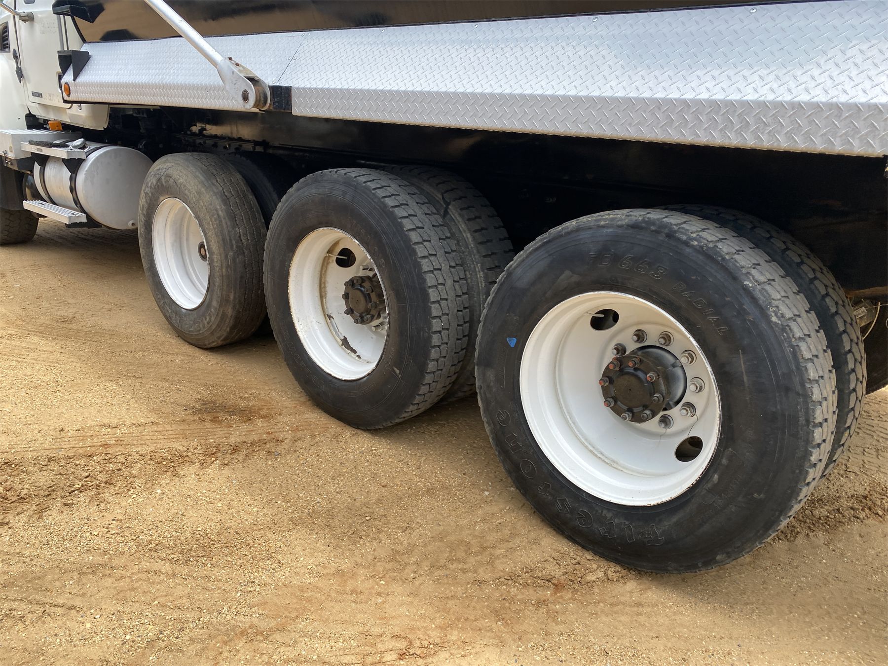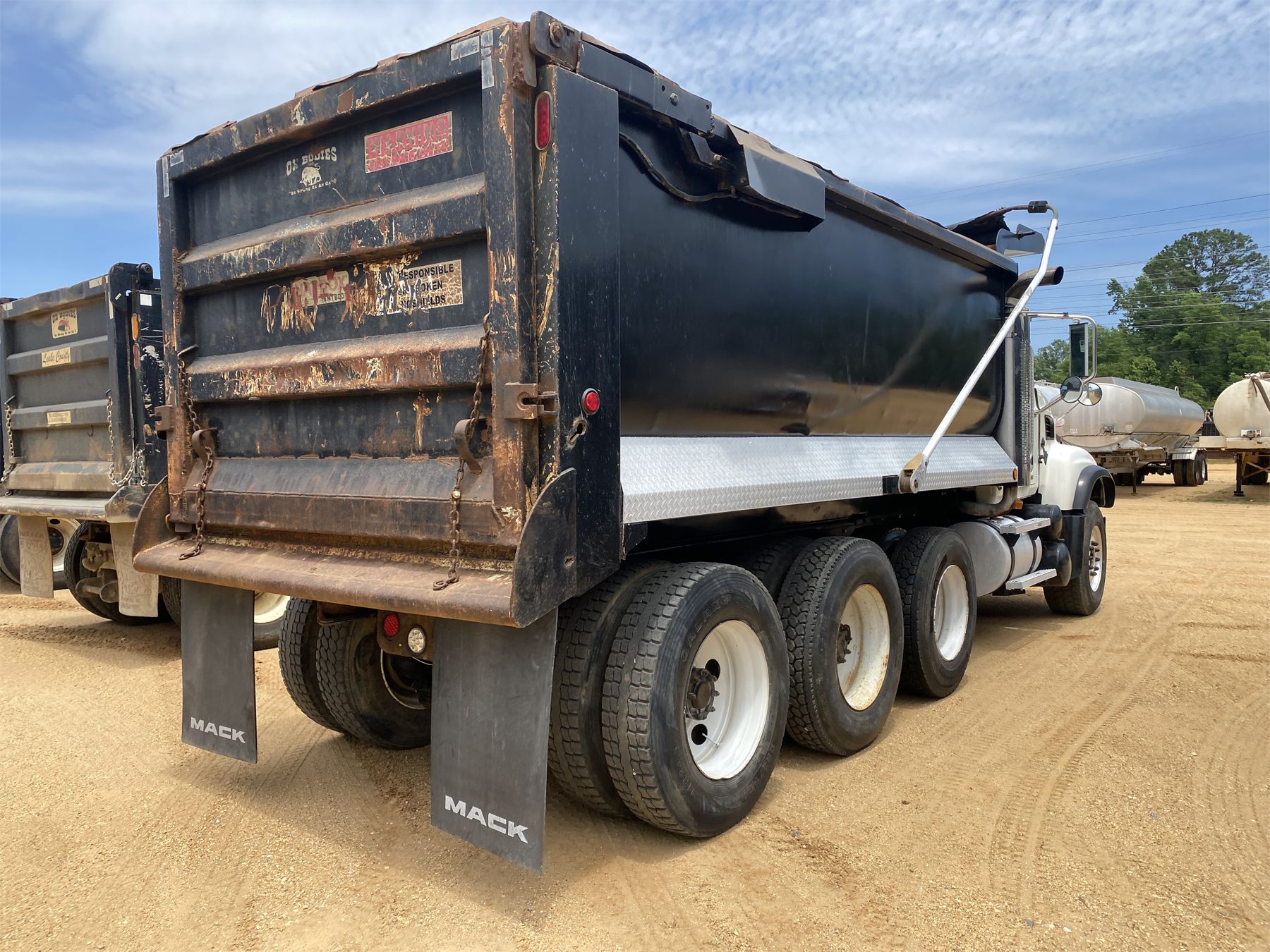 Tri Axle, Re-Mack engine, 10 speed trans, 16' Hard Ox body, 11R24.5 rear tires, 385/65R22.5 front tires