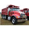 2007 MACK CV713 GRANITE TRI-AXLE DUMP, S/N M055318, 370/405 MACK, 10 SPD TRANS 44K REARS, 18K FRONTS, ENGINE BRAKE, P/S, A/C 16' OX DUMP BODY, 21 YD CAP, ELEC TARP, AIR TAILGATE, 385/65R22.5 FRONT TIRES ON ALUM DISC WHEELS, 11R24.5 REAR TIRES ON STEEL DISC WHEELS, ODOMETER READING 26,916 MI (COUNTY OWNED)