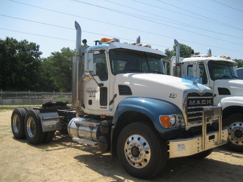 2007 MACK CV713 T/A TRUCK TRACTOR, S/N M057392, 370/405 HP MACK ENG, 10 SPD MACK TRANS, ENGINE BRAKE, LOCKING DIFF, P/S, A/C CAMELBACK SUSP, DUAL EXHAUST ALUM HEADACHE RACK, DISC WHEELS, 11R24.5 TIRES