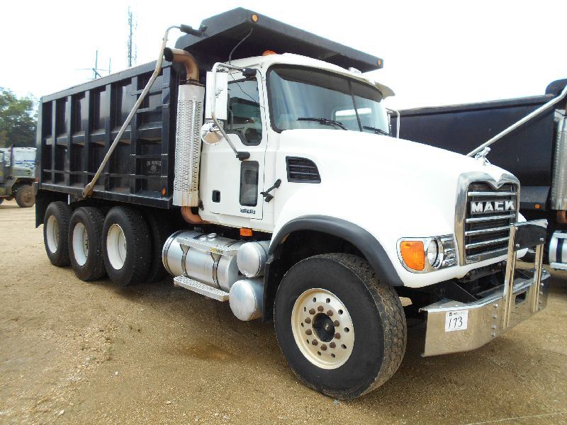 2007 MACK CV713 TRI AXEL DUMP, S/N 1M2AG11C67M060863, MACK AI427 ENG, T310 10 SPD TRANS, 44K REARS, 18K FRONT, ENGINE BRAKE, OX 16' - 21 YD BODY, ELECT TARP, AIR TAILGATE, 11R24.5 REAR TIRES ON STEEL DISC WHEELS, 385/65E22.5 FRONT TIRES ON ALUM DISC WHEELS