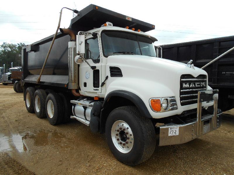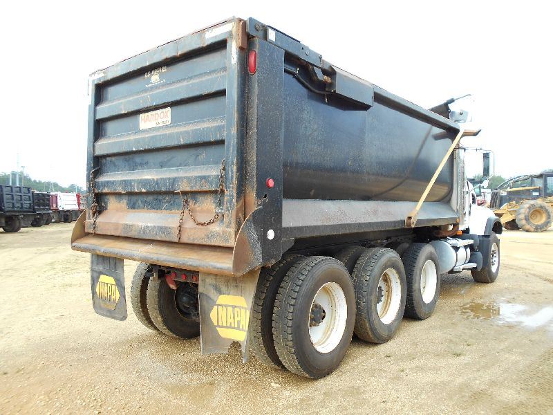 2007 MACK CV713 TRI-AXEL DUMP, S/N 1M2AG11CX7M061661, MACK AI427 ENG, T310 10 SPD TRANS, 44K REARS, 18K FRONT, ENGINE BRAKE, OX 16' - 21 YD BODY, ELEC TRAP, HIGH-LIFT GATE, 11R24.5 REAR TIRES ON STEEL DISC WHEELS, 38/65R22.5 FRONT TIRES ON ALUM DISC WHEELS, ODOMETER READING 34,686 MILES