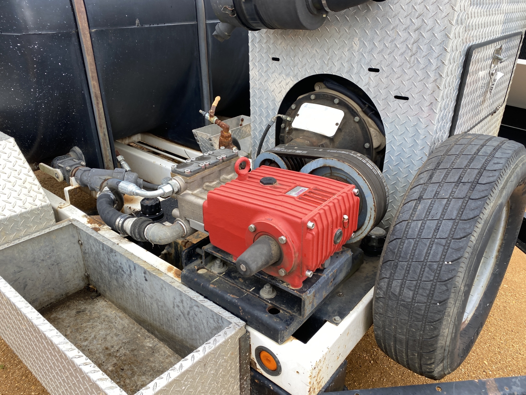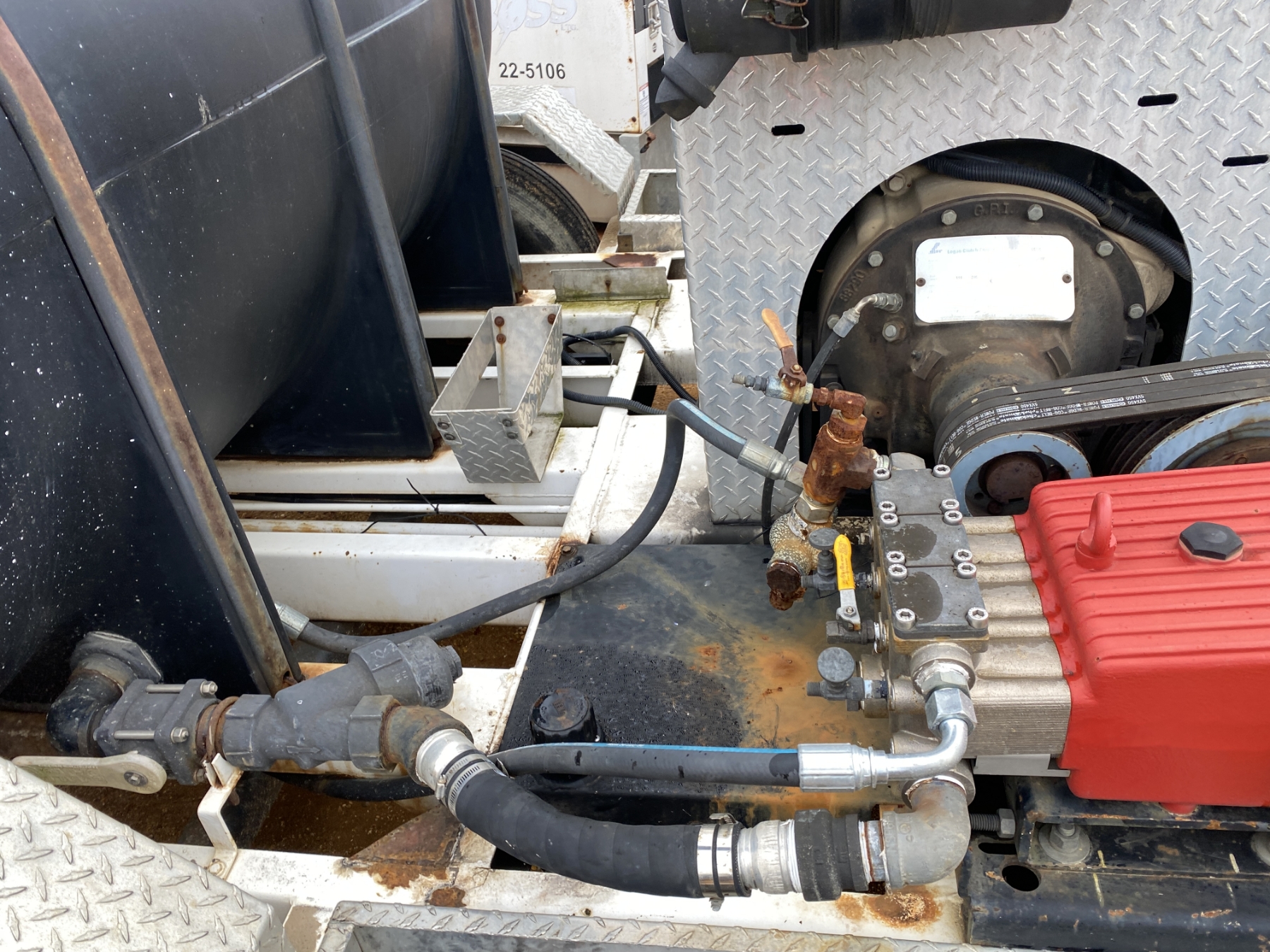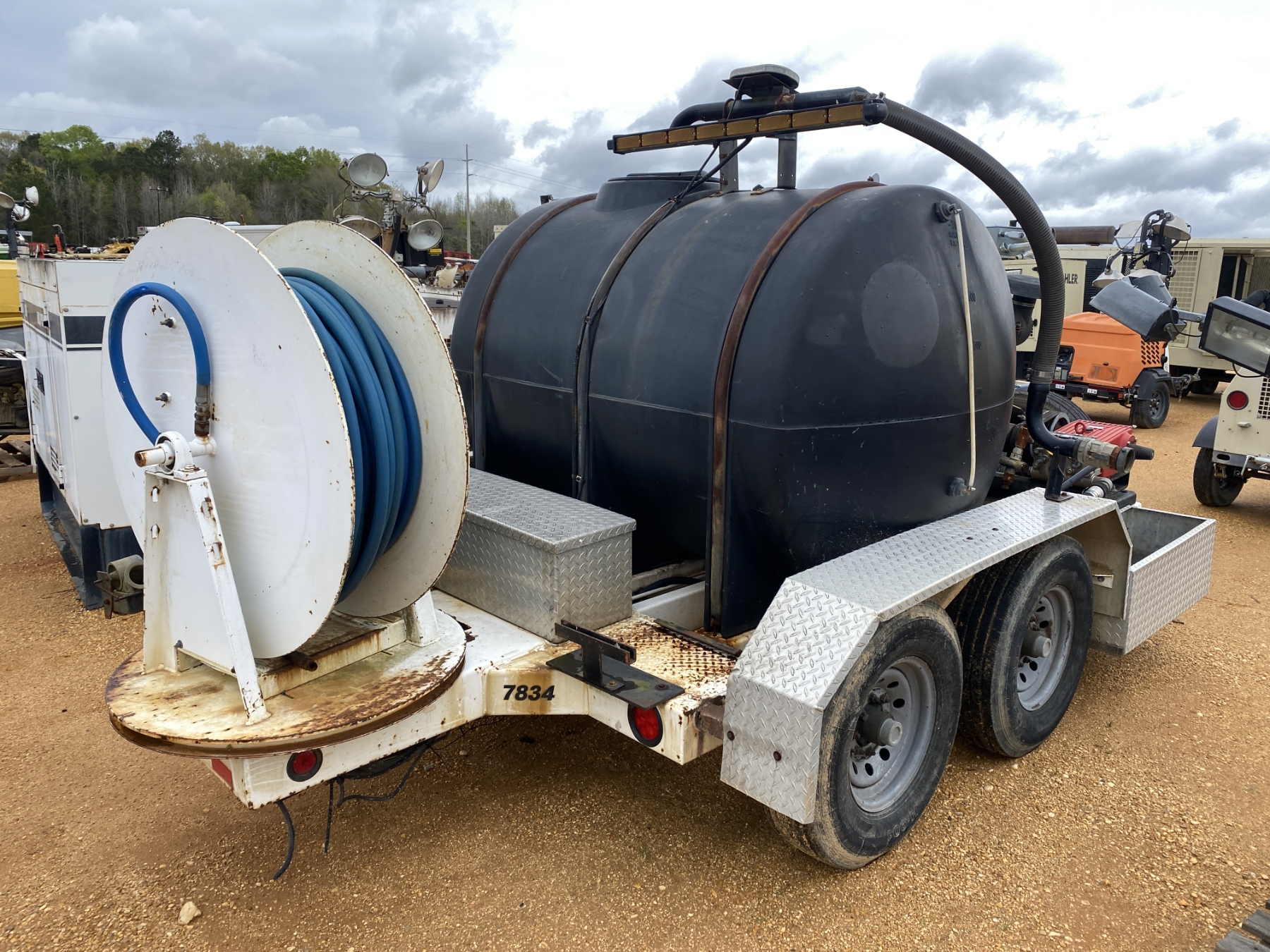 JD diesel, hose reel, 589 hours, mounted on T/A trailer