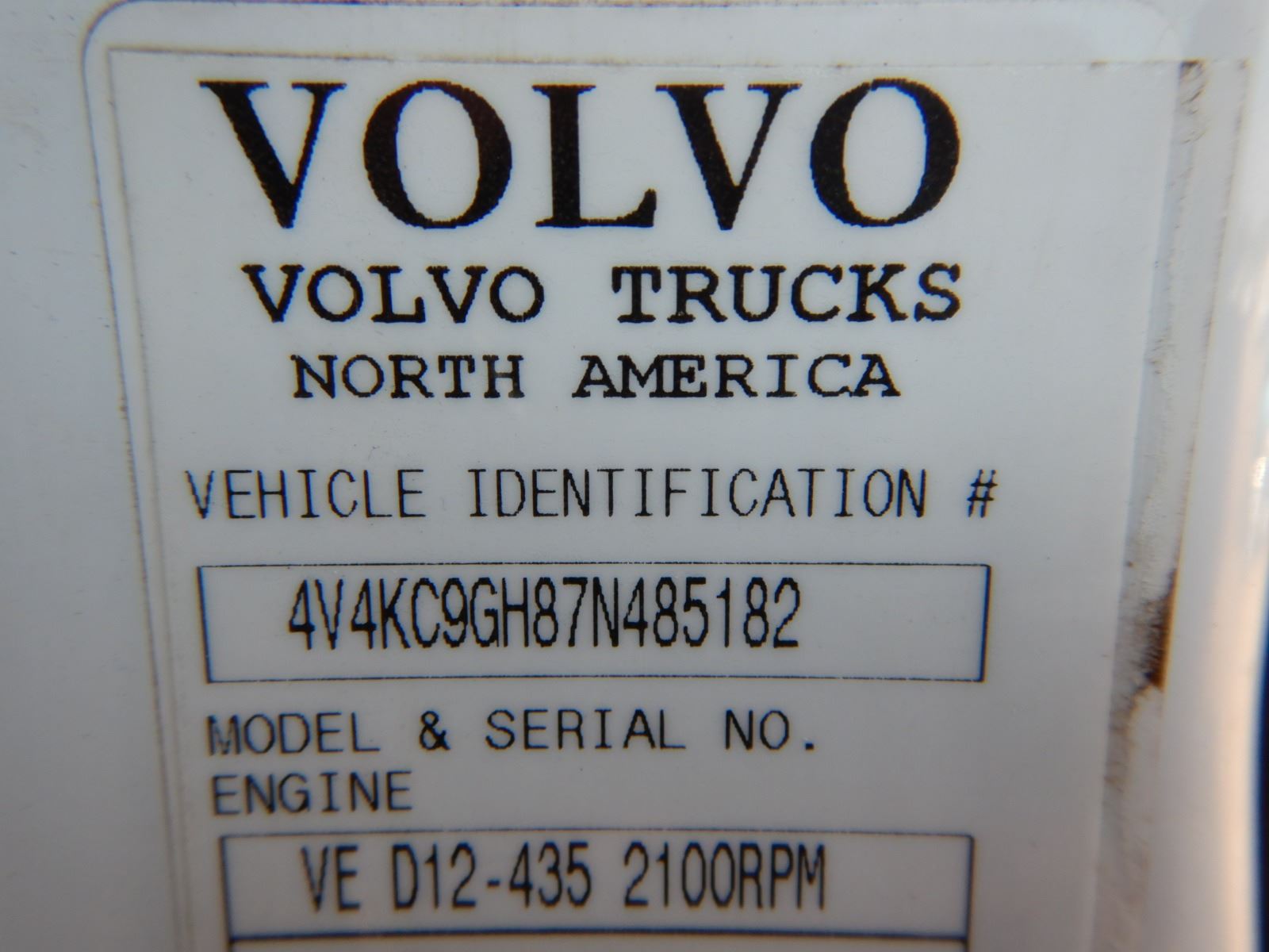 2007 VOLVO VHD64F TRUCK TRACTOR, VIN/SN:4V4KC9GH87N485182 - T/A, 435HP VOLVO D12 ENGINE, 10 SPEED TR