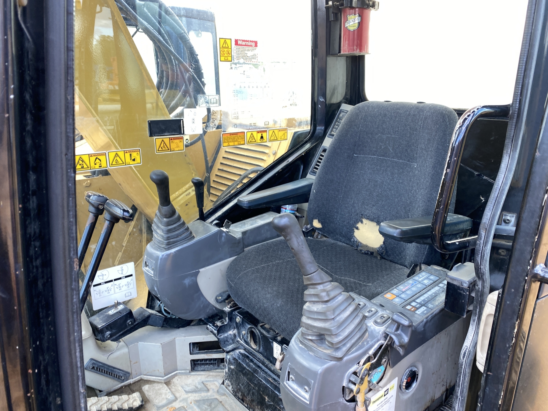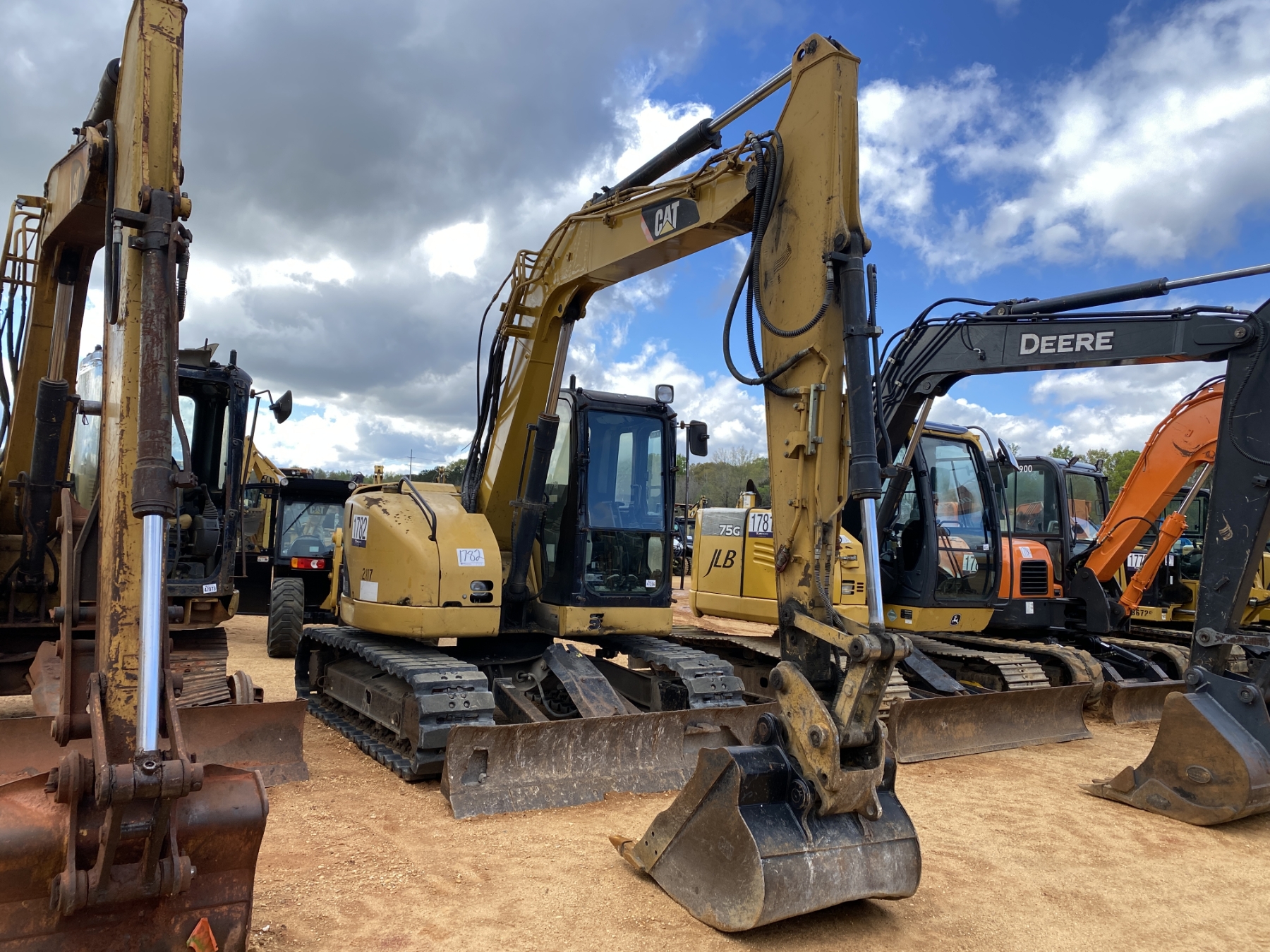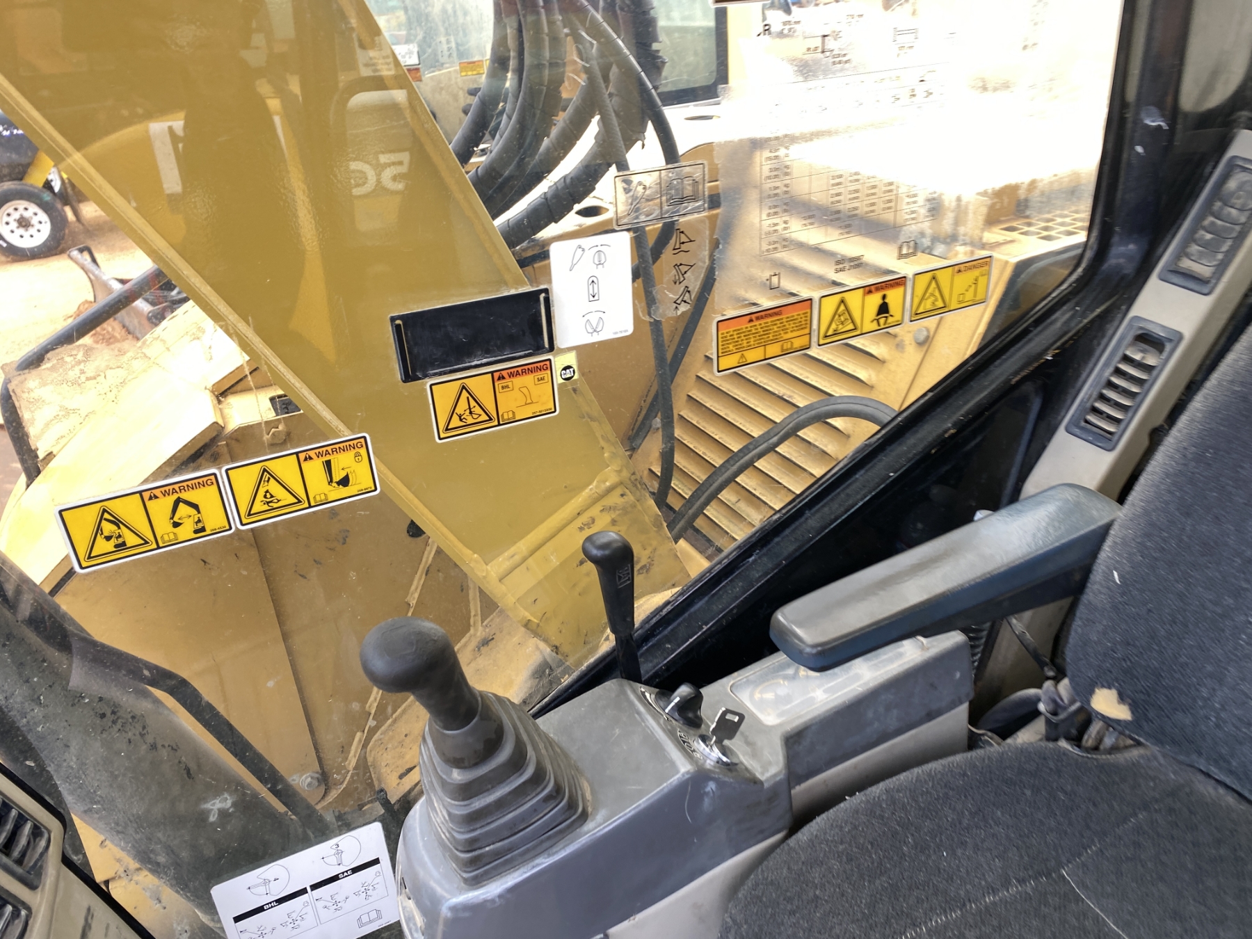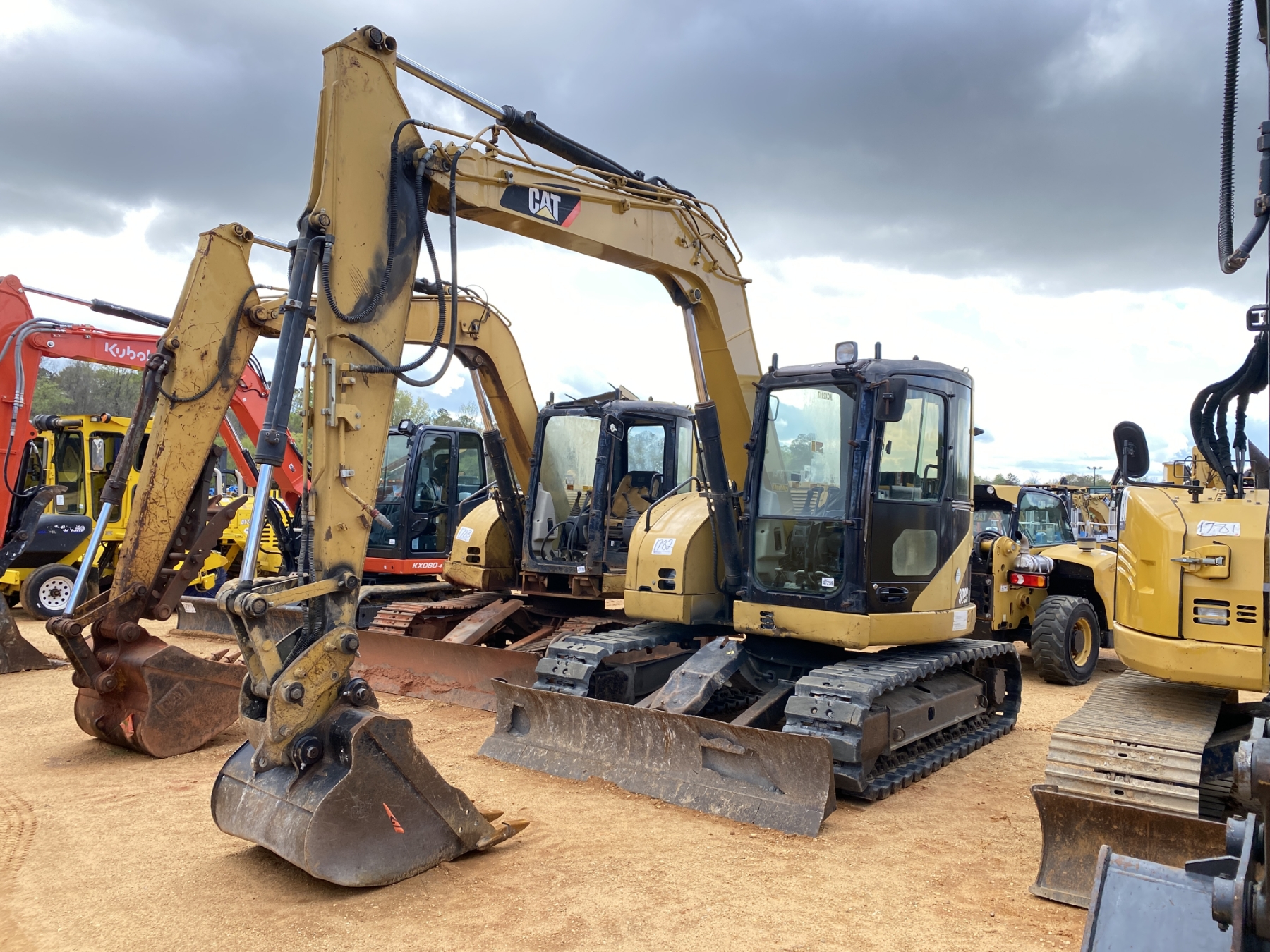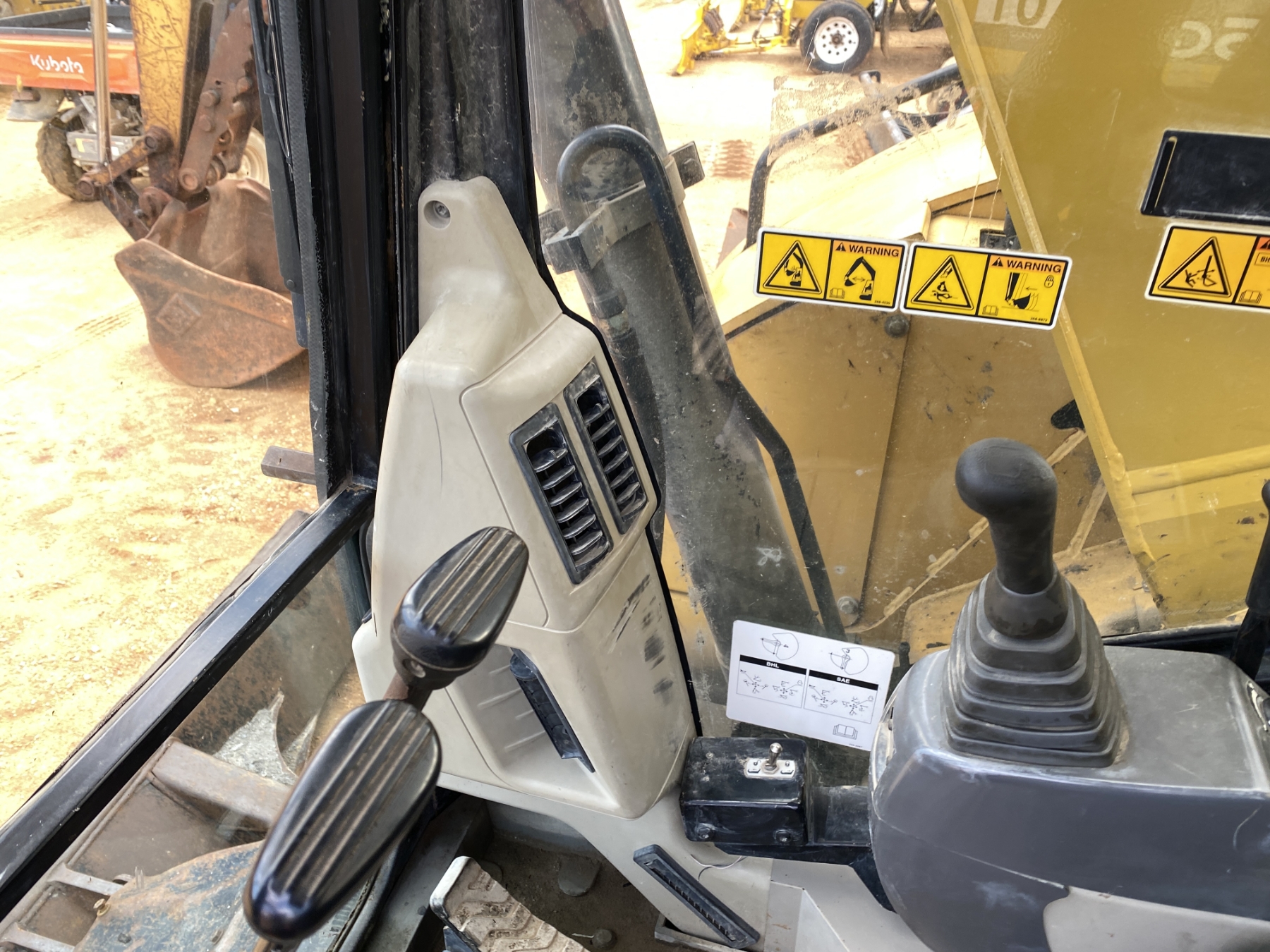 7' 3" stick, 36" bucket, coupler, aux hyd, blade, rubber tracks, cab, A/C