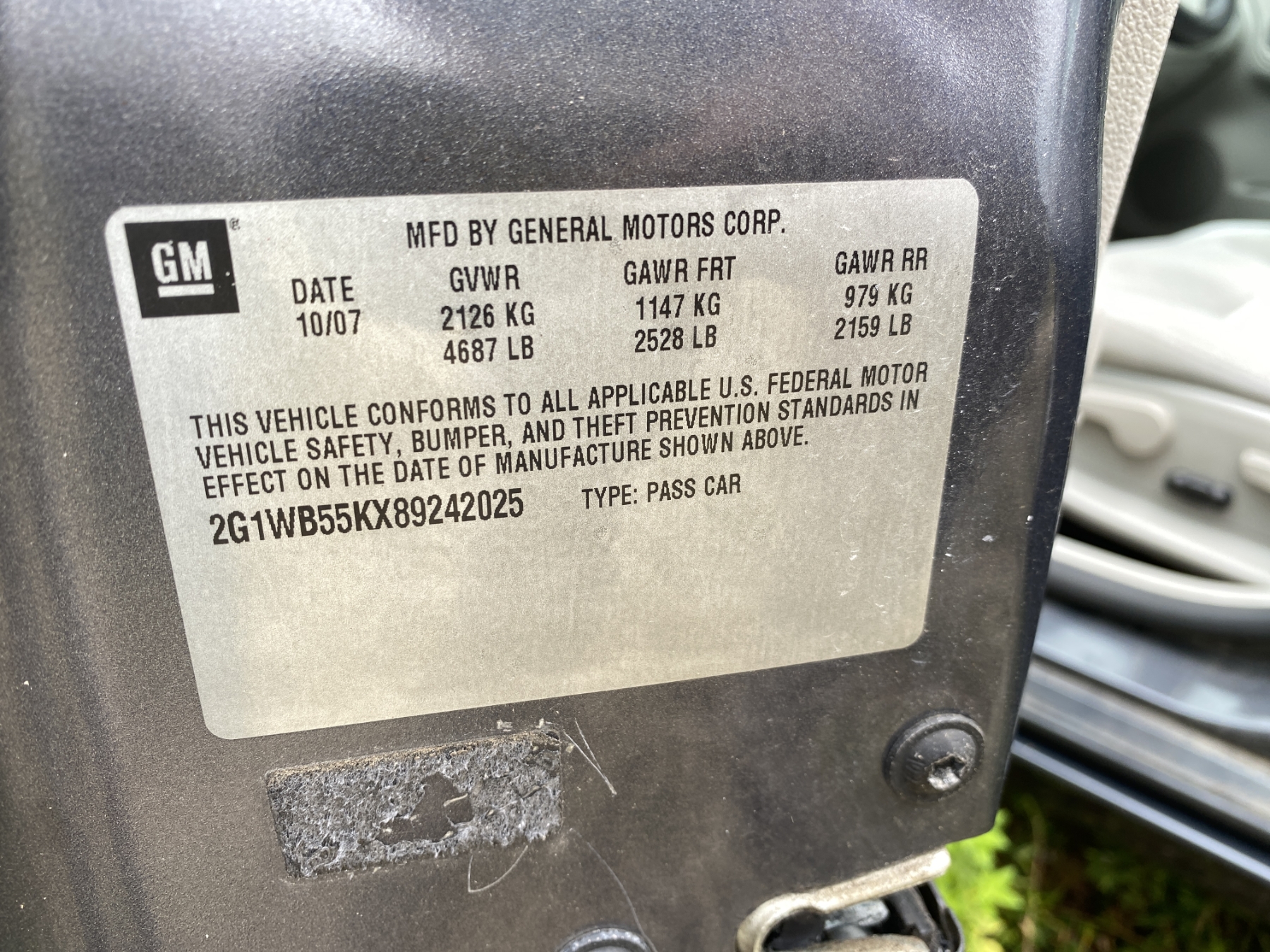 Vehicle ID Number: 2G1WB55KX89242025