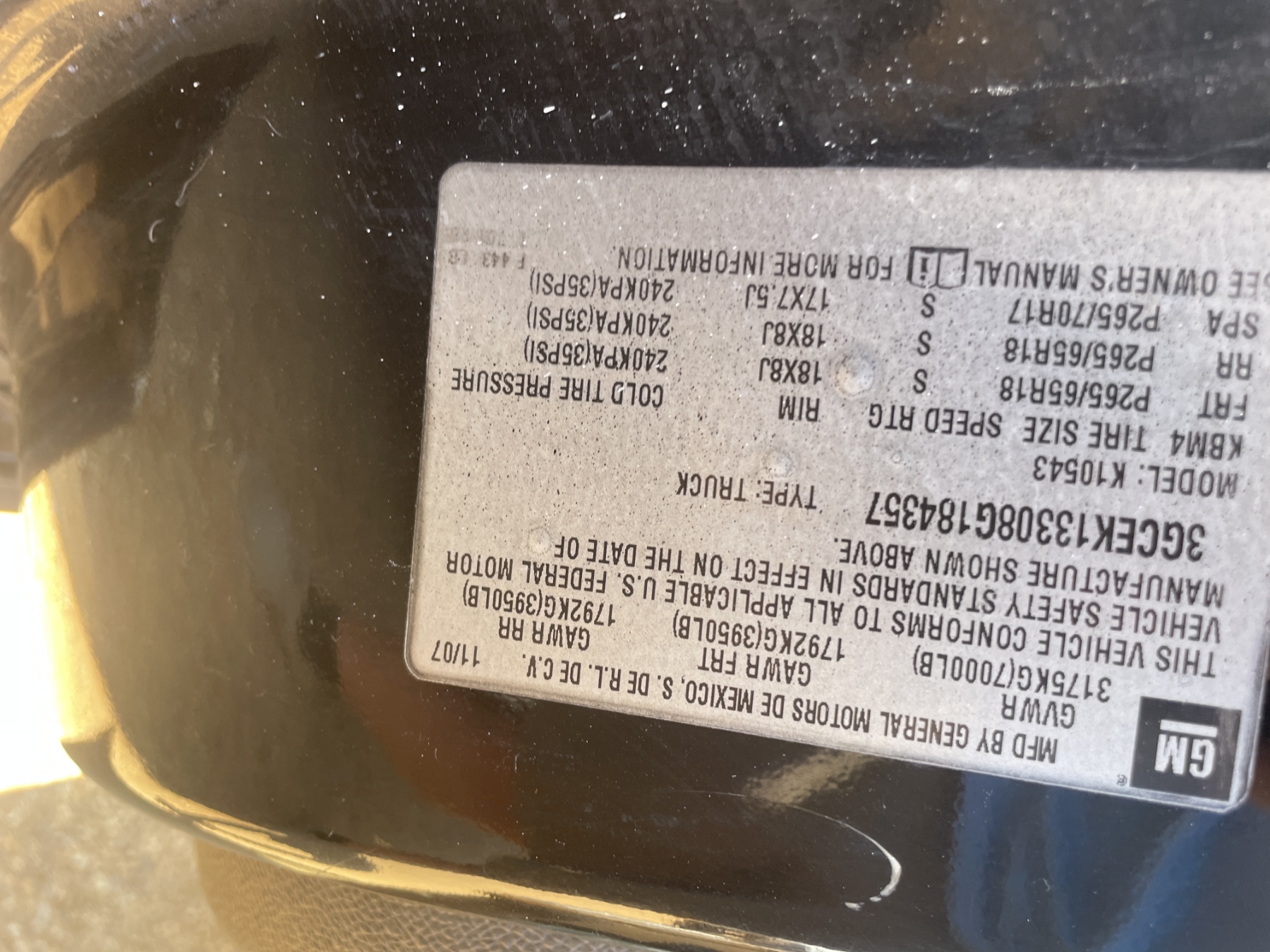 Vehicle ID Number: 3GCEK13308G184357
