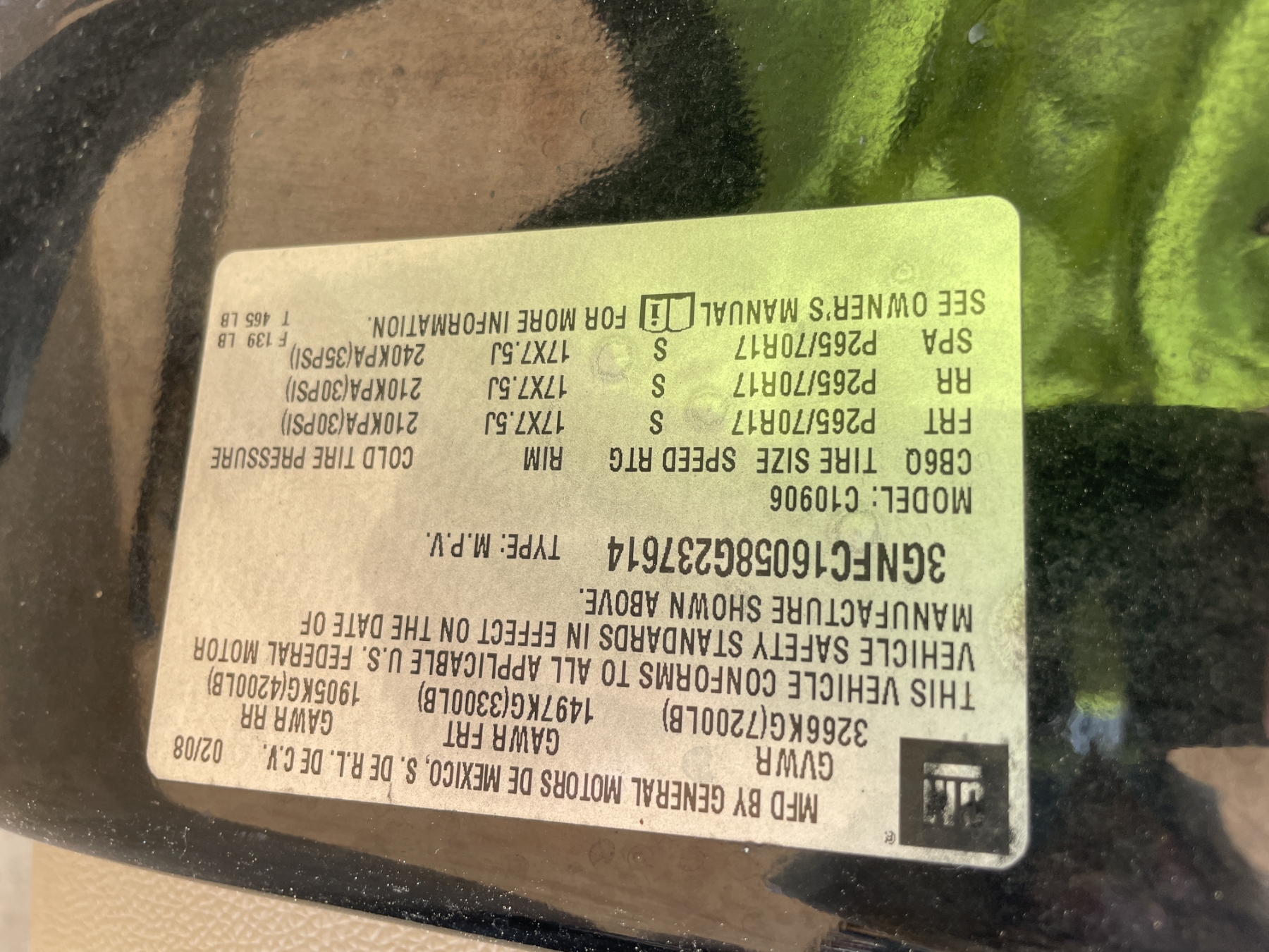 Vehicle ID Number: 3GNFC16058G237614