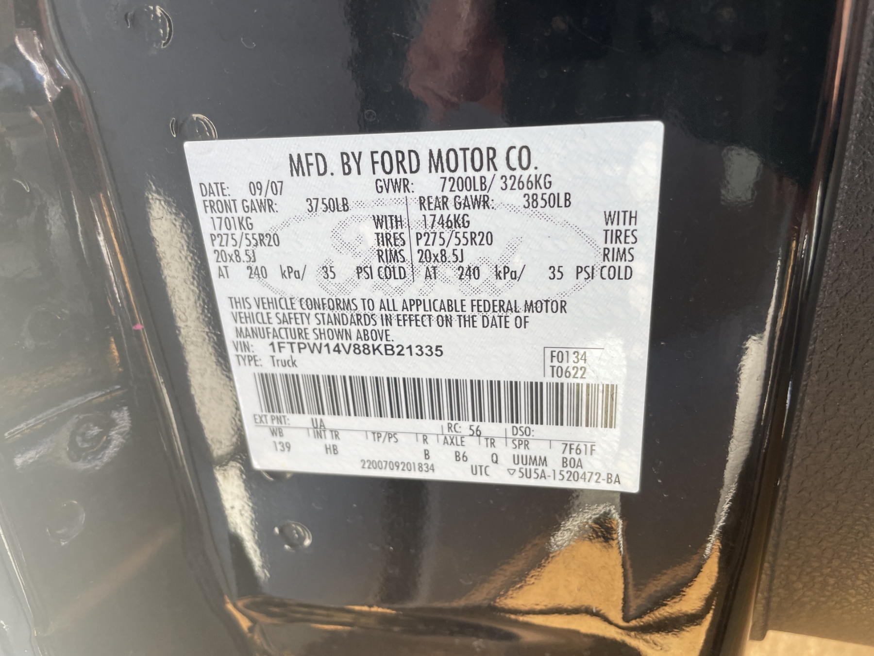 Vehicle ID Number: 1FTPW14V88KB21335