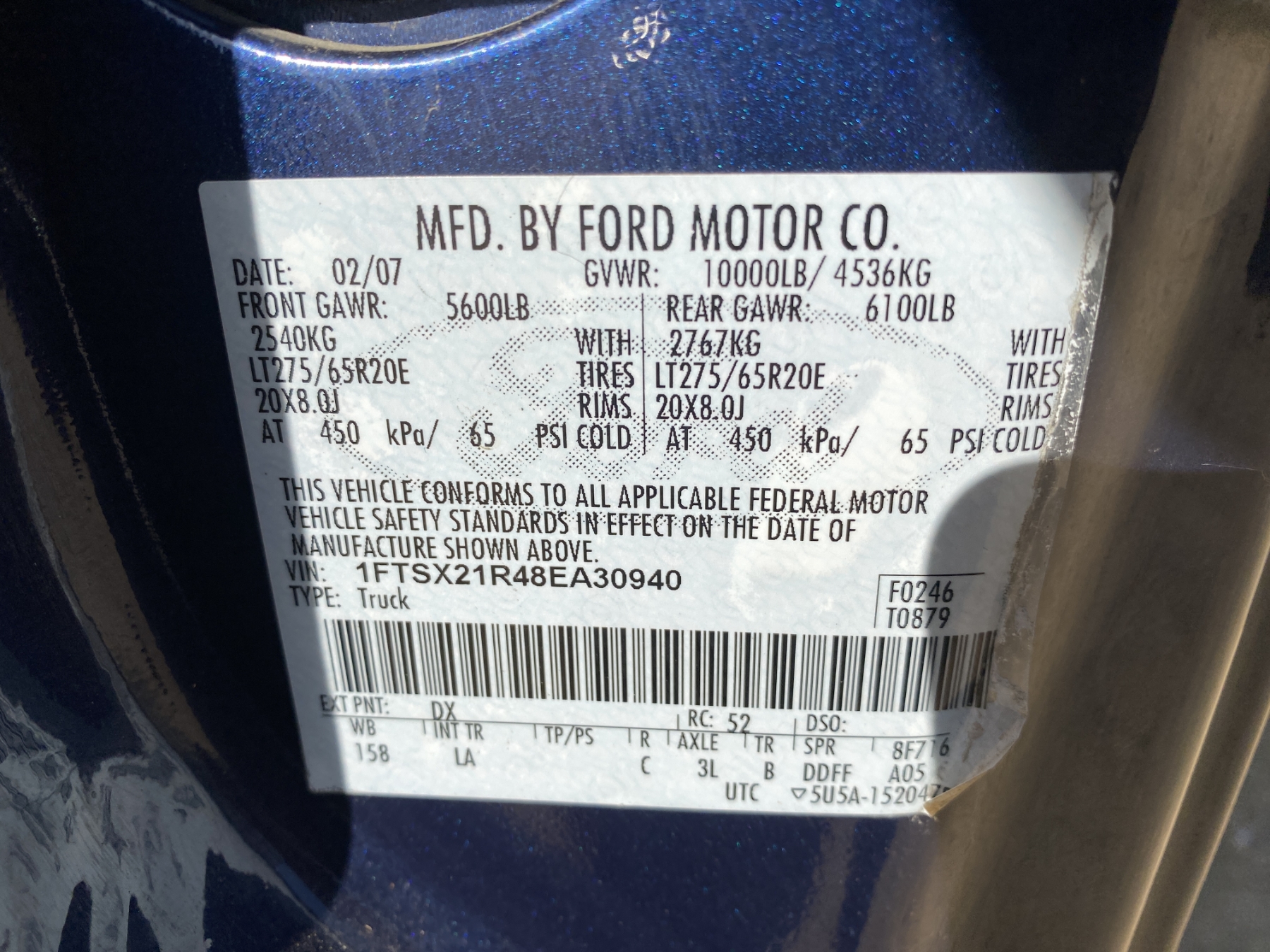 Vehicle ID Number: 1FTSX21R48EA30940