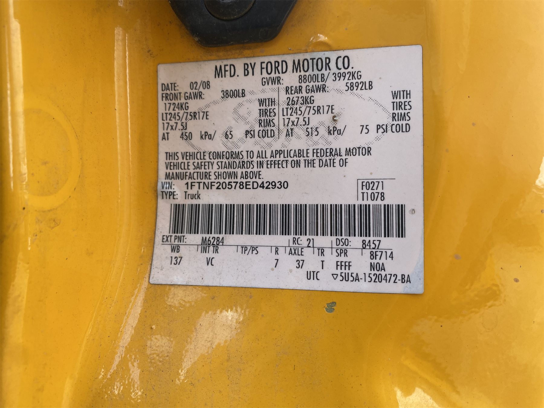 Vehicle ID Number: 1FTNF20578ED42930