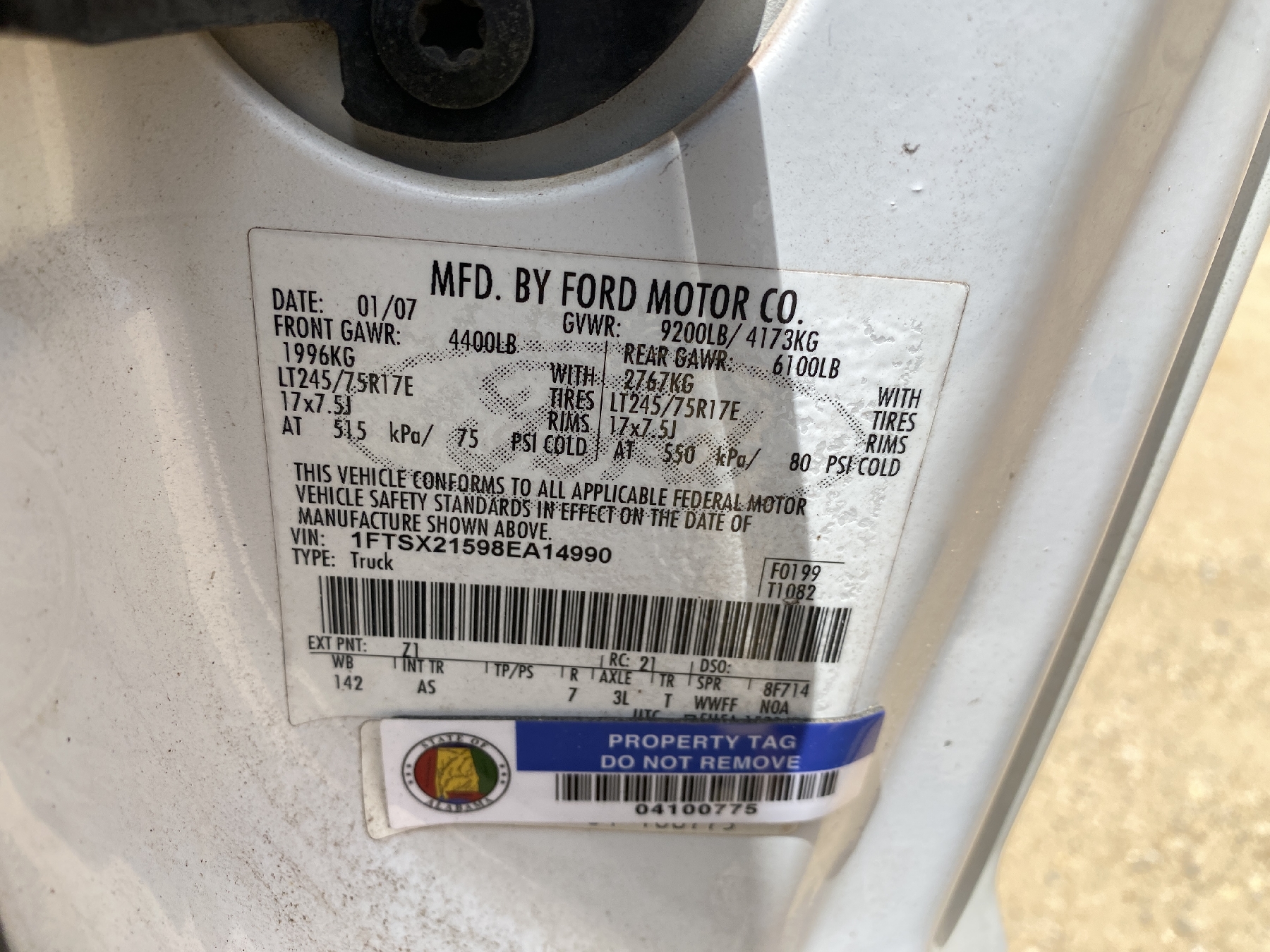 Vehicle ID Number: 1FTSX21598EA14990