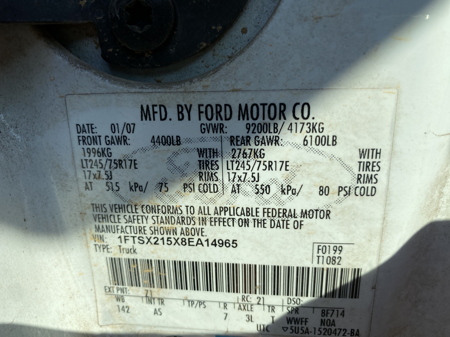Vehicle ID Number: 1FTSX215X8EA14965
