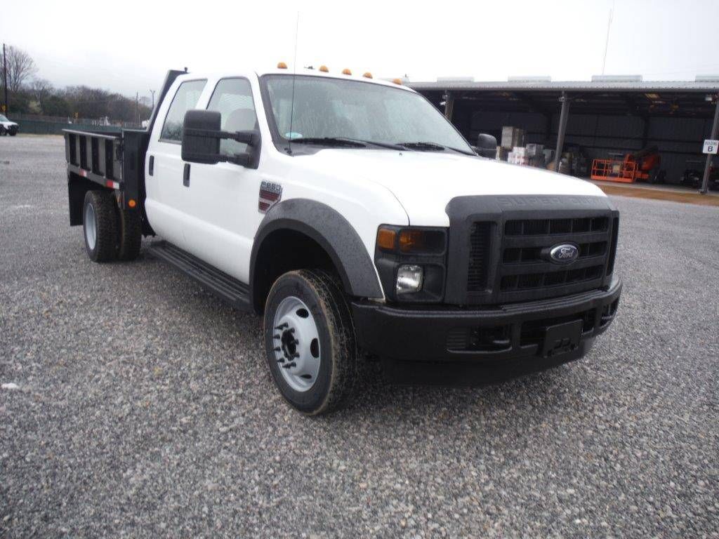 2008 FORD F550XL CREW CAB FLATBED, S/N 1FDAW56R38ED74831 , 6.4L POWERSTROKE DIESEL, A/T, 9' FLATBED BODY W/ SIDES & GATE, PENTLE HITCH, ODOMETER READING 107,333 MI