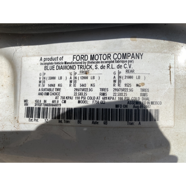 2008 FORD F750 Dump TruckS/A, Cat C7 engine, A/T, 33K GVWR, 10' Warren body, 11R22.5 tires, (Inope... Show more..