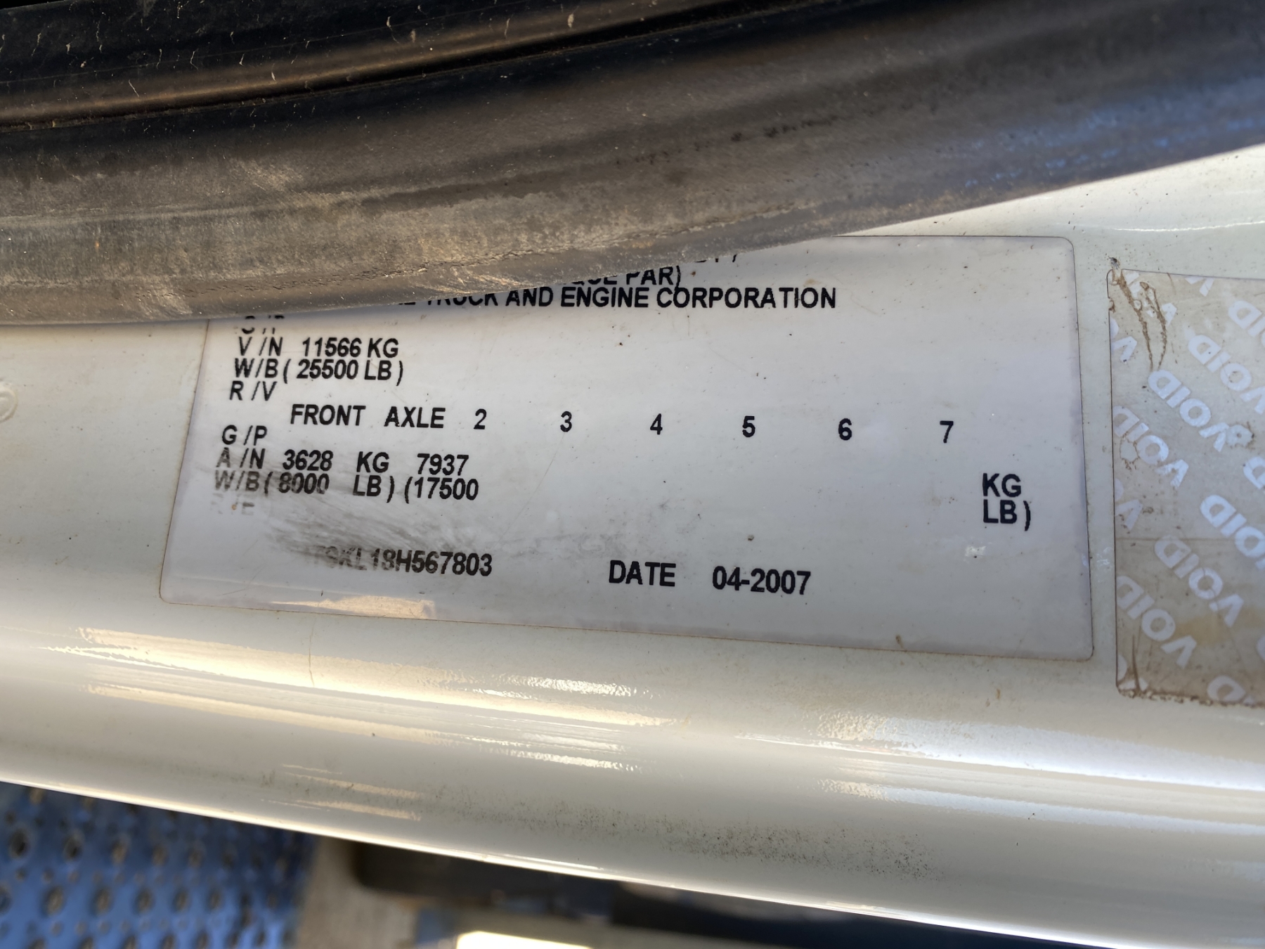 Vehicle ID Number: 1HTJTSKL18H567803