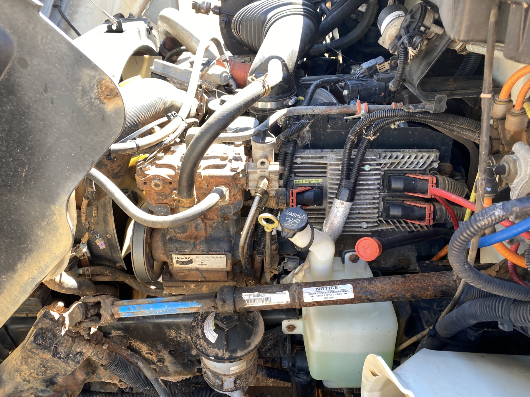 S/A, crew cab, MaxxForce 7 engine, A/T, 25,500 lb. GVWR, 12' flatbed dump, 10R22.5 tires